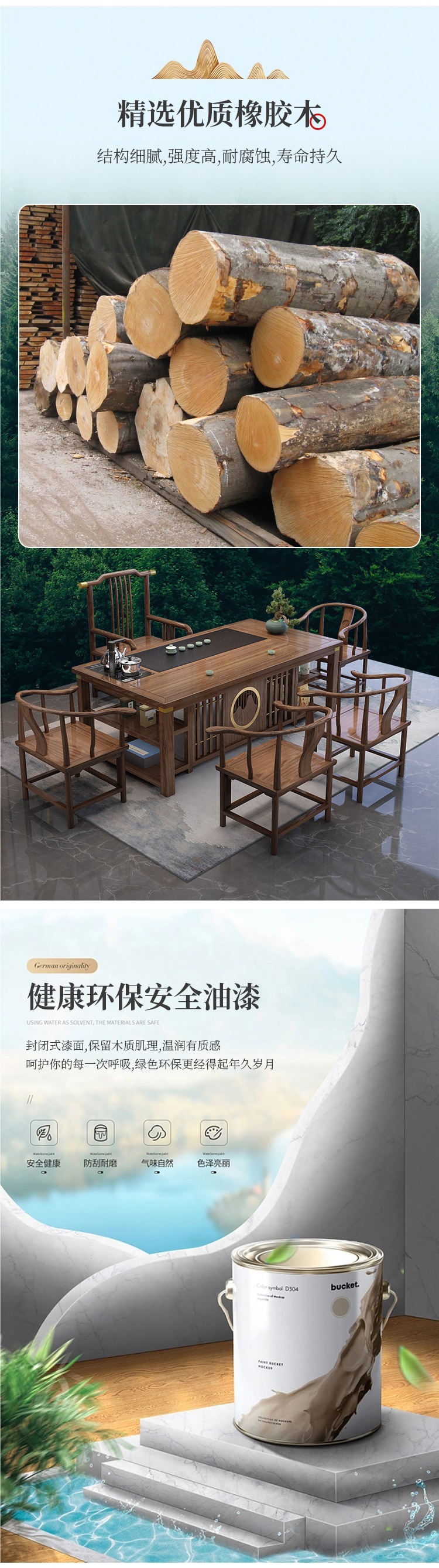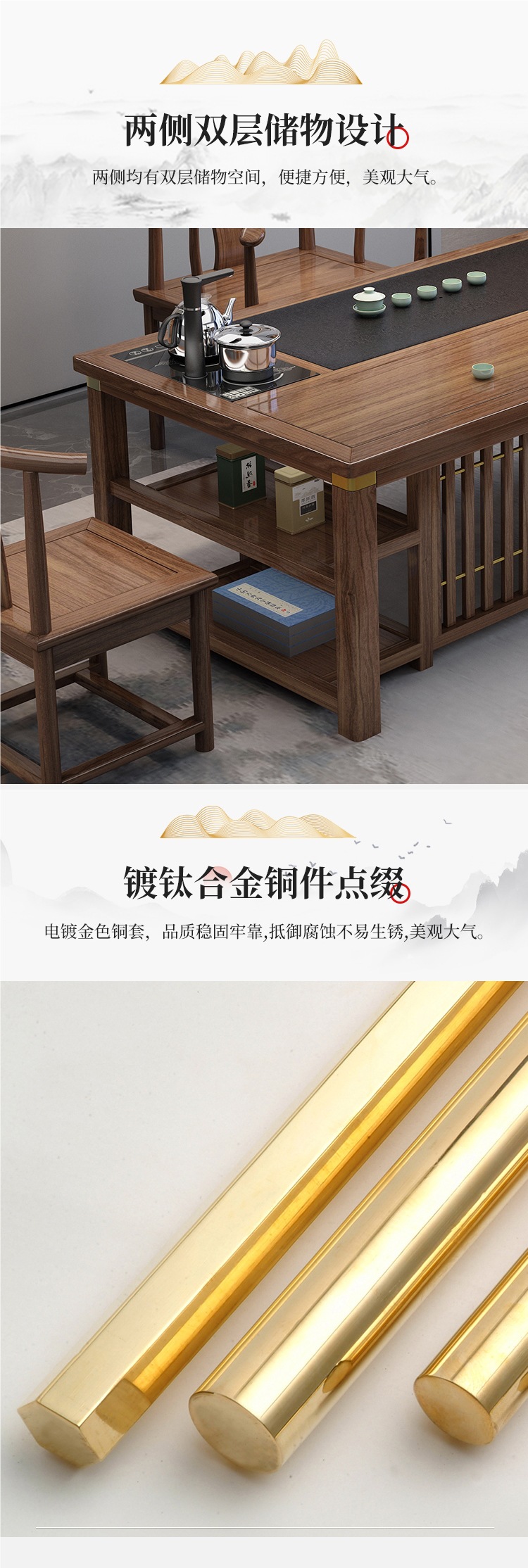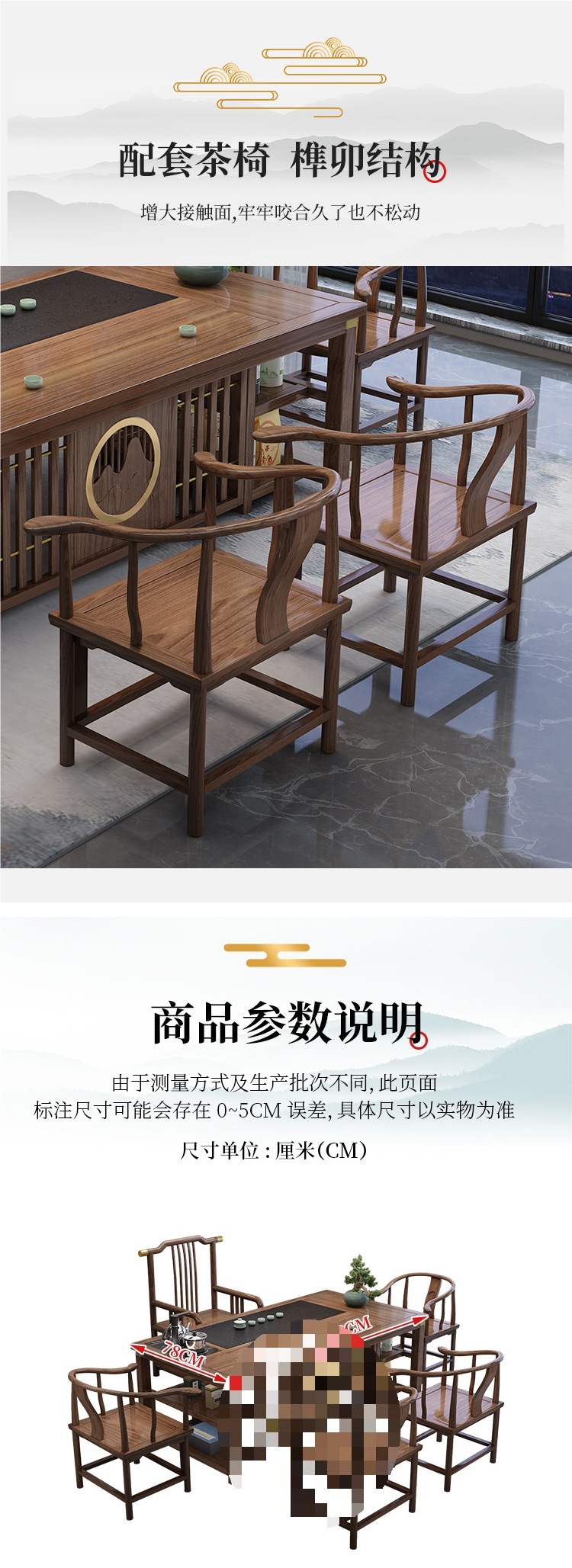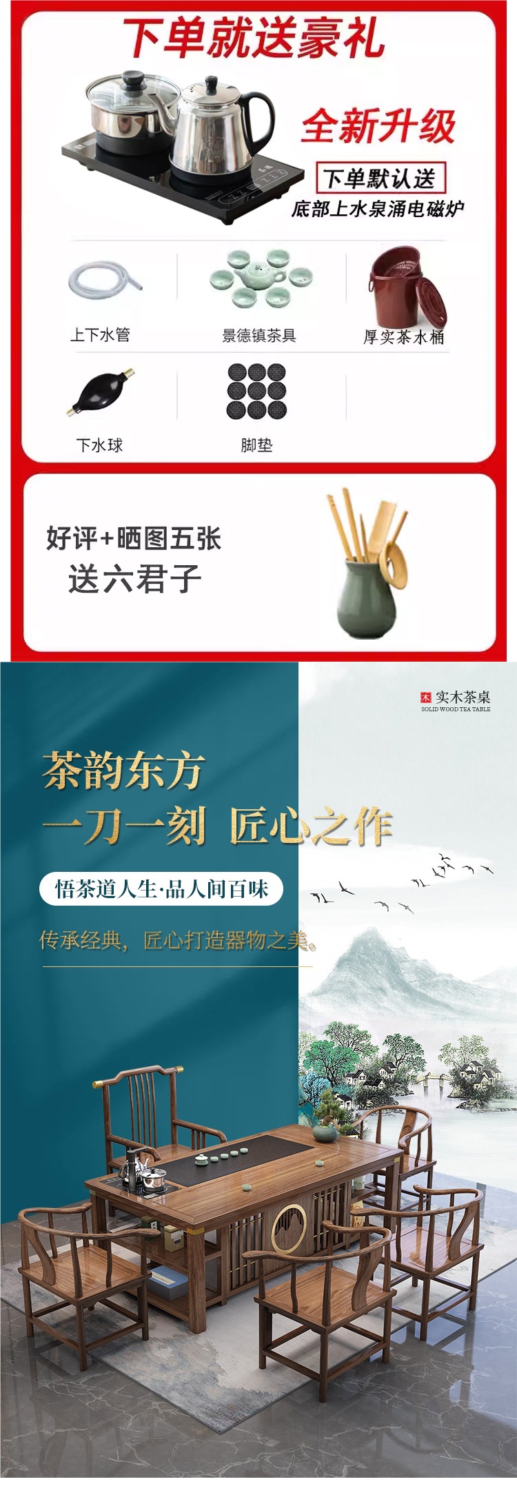 • 1.8m Xianghe + 빗 등받이 의자 1개, 구리 슬리브가 있는 초승달 의자 4개, 중간 돌 접시/이중 보관함