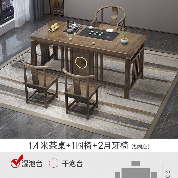 새로운 중국 스타일의 차 테이블과 의자 조합 단단한 나무 사무실 쿵푸 커피 테이블 가정용 세트 통합 발코니 작은 차 테이블스토어 가기
