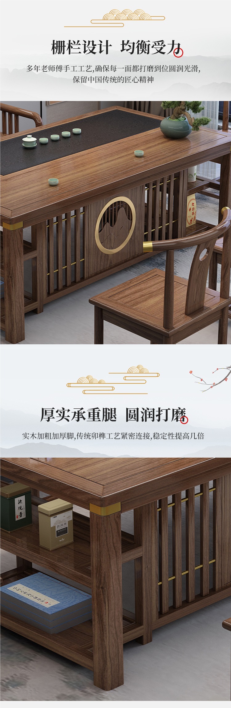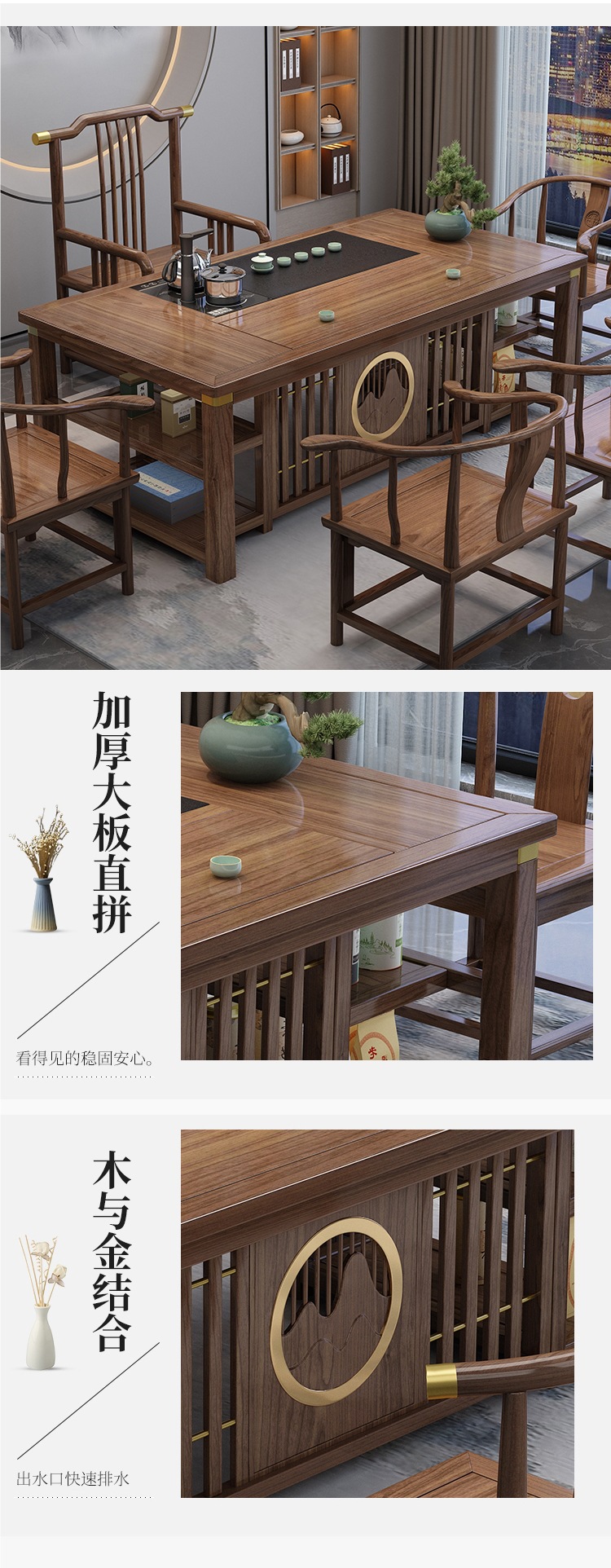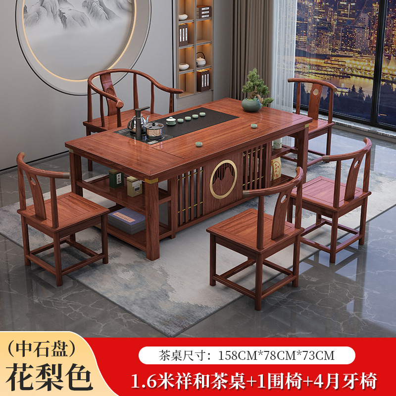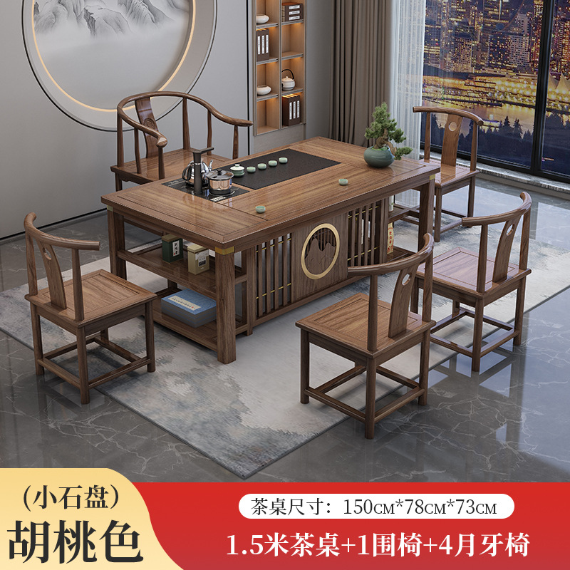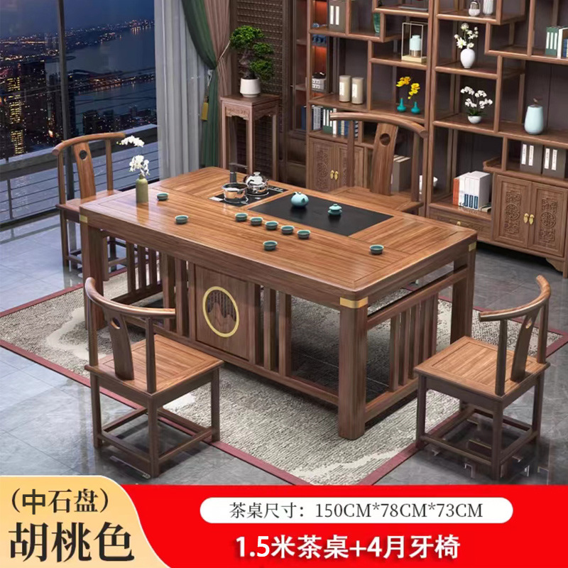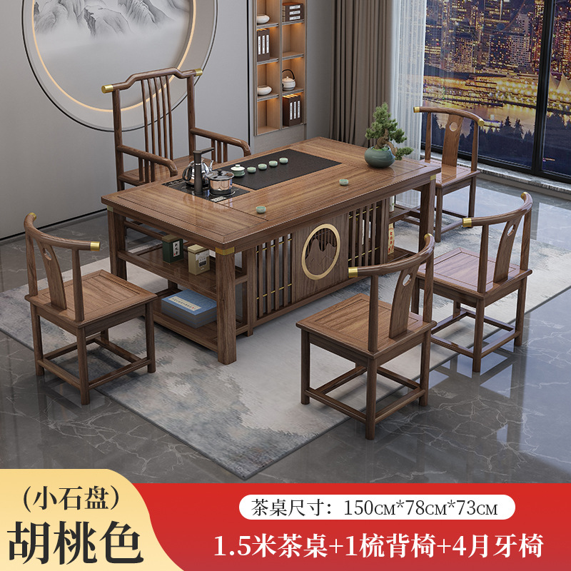 새로운 중국 스타일의 차 테이블과 의자 조합 단단한 나무 사무실 쿵푸 커피 테이블 가정용 세트 통합 발코니 작은 차 테이블