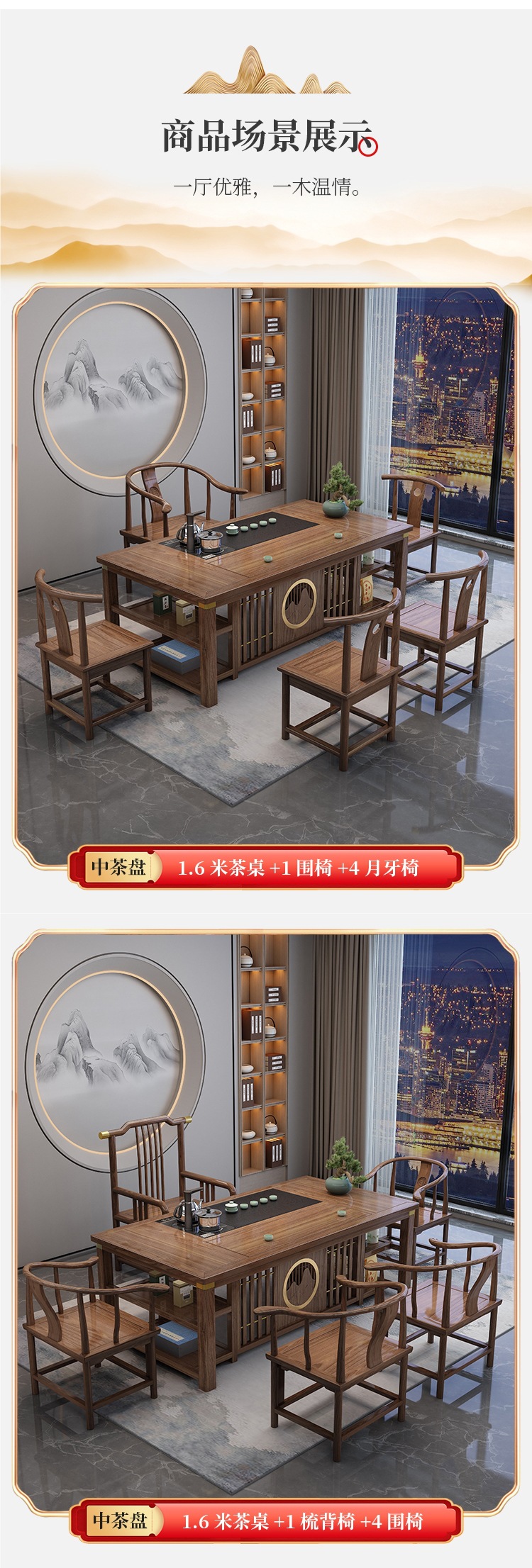 • 평면 모델 1.6m Mingyue + 1개의 울타리 의자 4개의 초승달 의자(독립적인 차 캐비닛 포함)