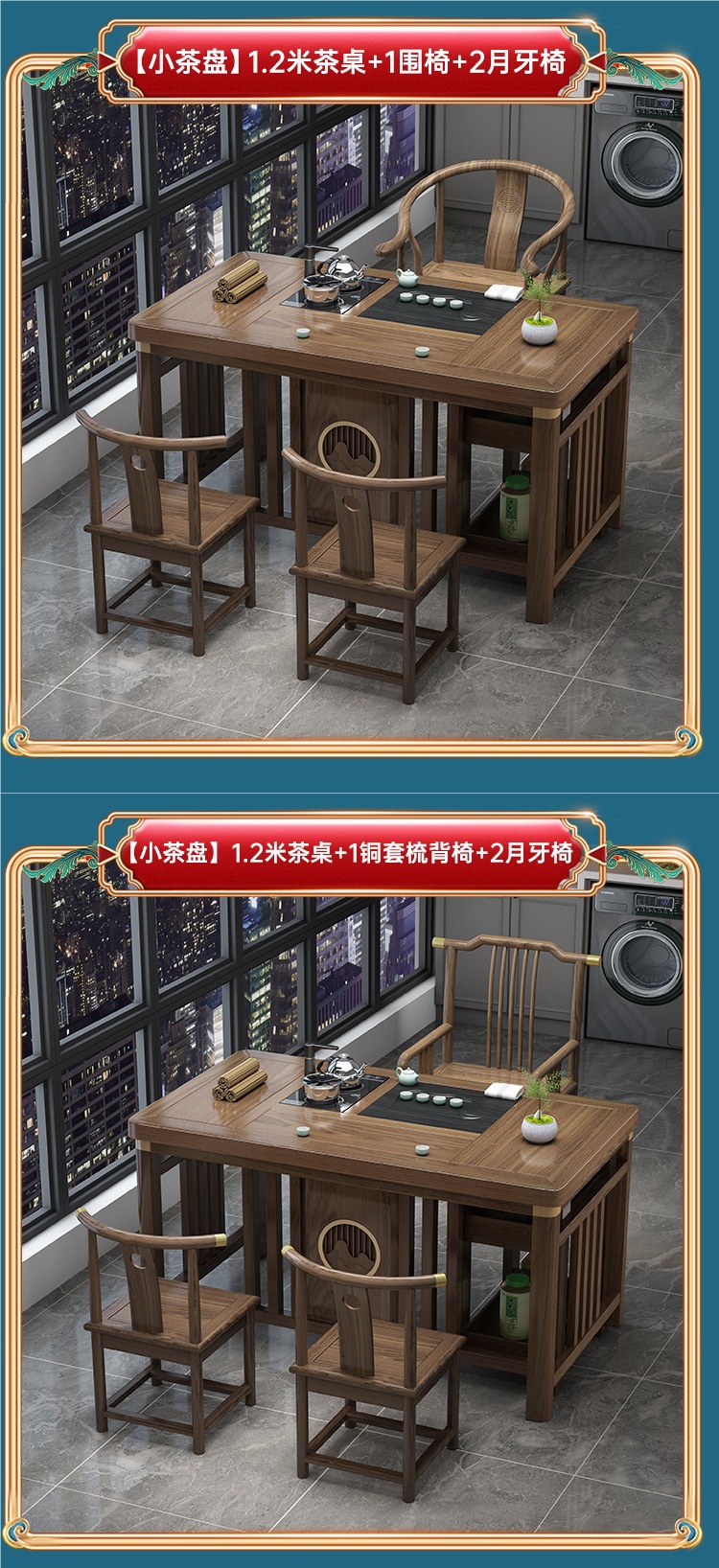 • 평면 모델 1.2m 명월 + 울타리 의자 1개, 독립 차 캐비닛이 있는 초승달 의자 2개