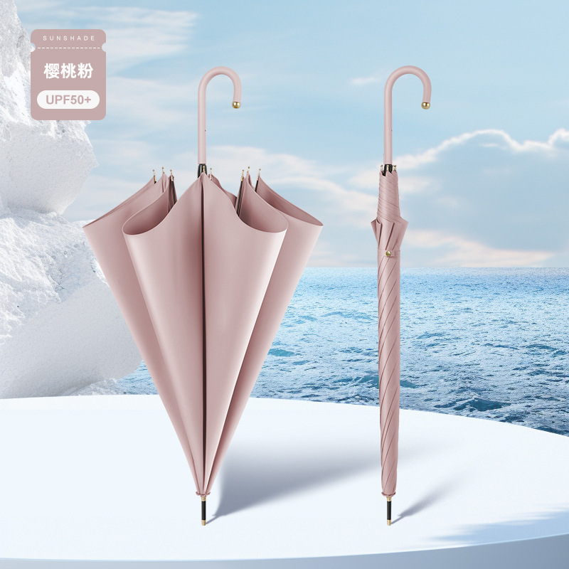 8 뼈 작은 신선한 후크 긴 손잡이 스트레이트 로드 우산 맑고 비 이중 사용 광고 우산 선 스크린 태양 우산