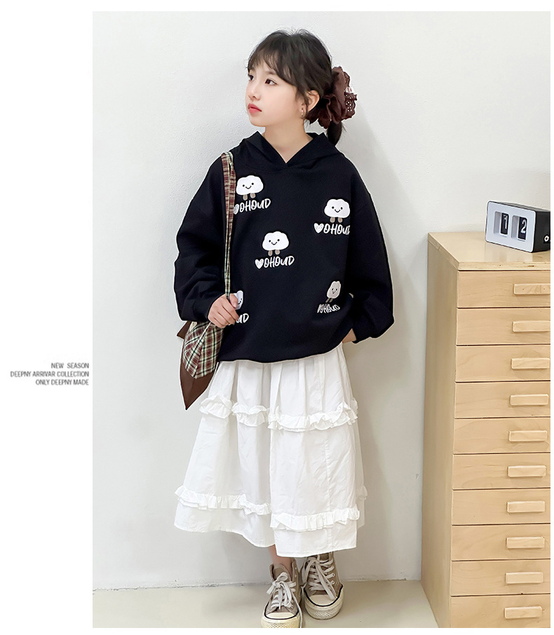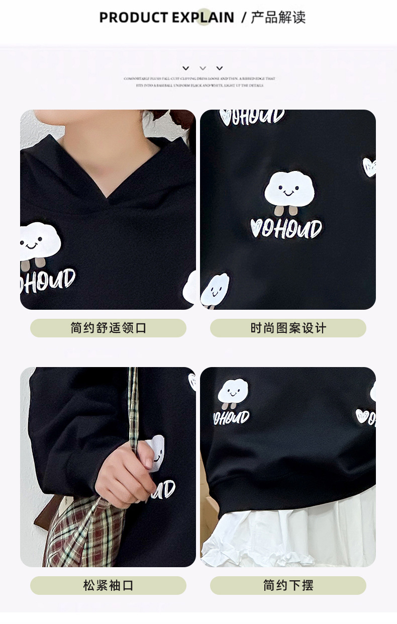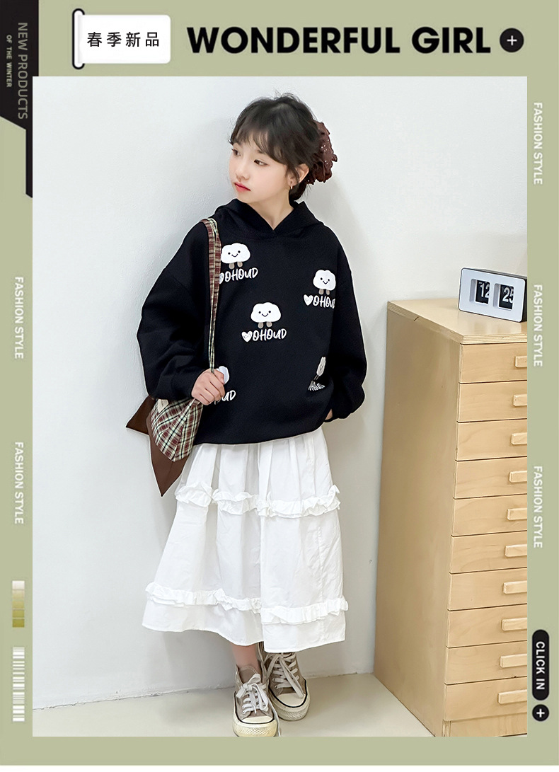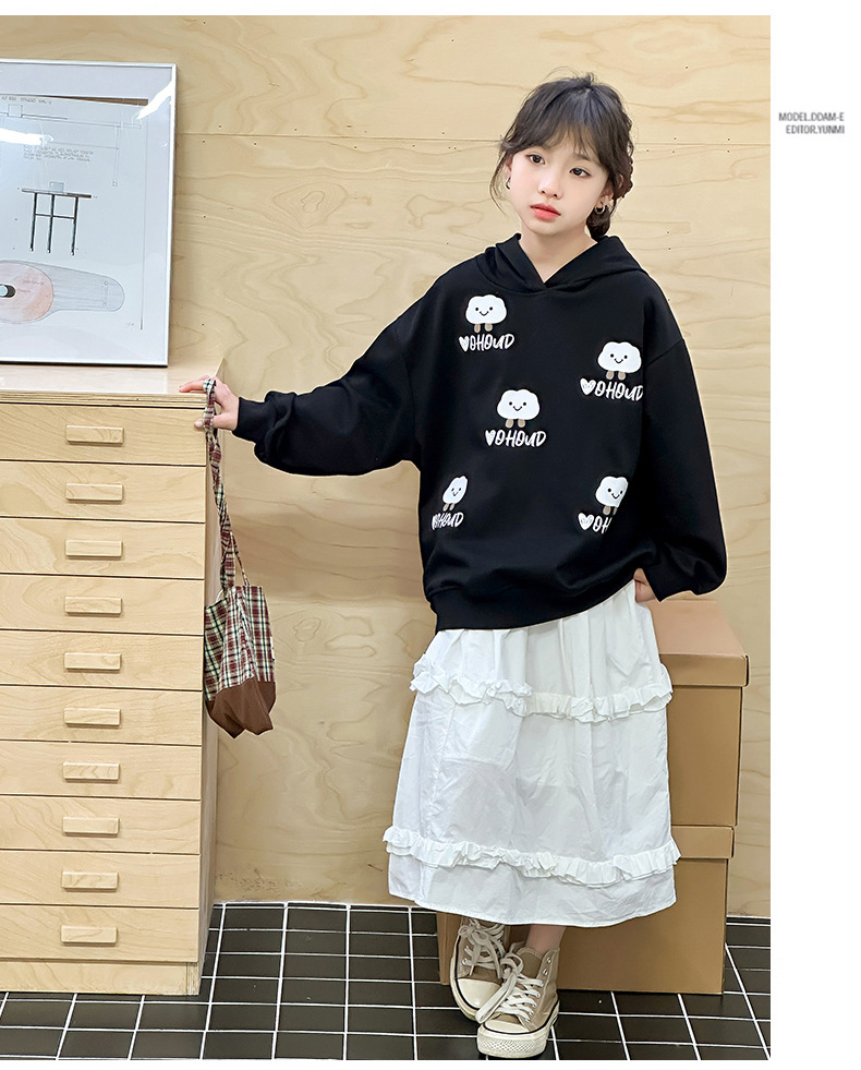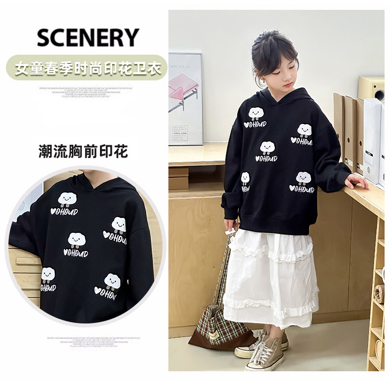 2025 소녀의 봄 디자인 센스 후드 폭발성 올매치 인쇄 후드 땀 큰 어린이 구름 땀스토어 가기