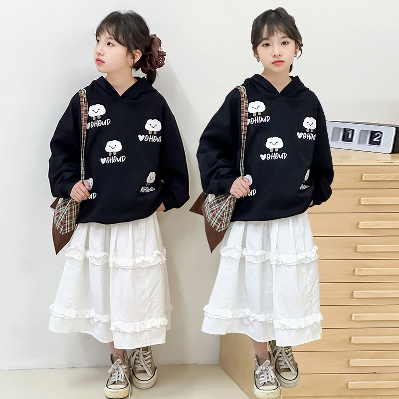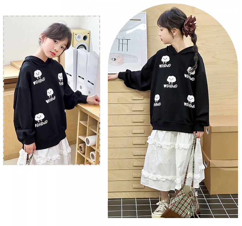 2025 소녀의 봄 디자인 센스 후드 폭발성 올매치 인쇄 후드 땀 큰 어린이 구름 땀