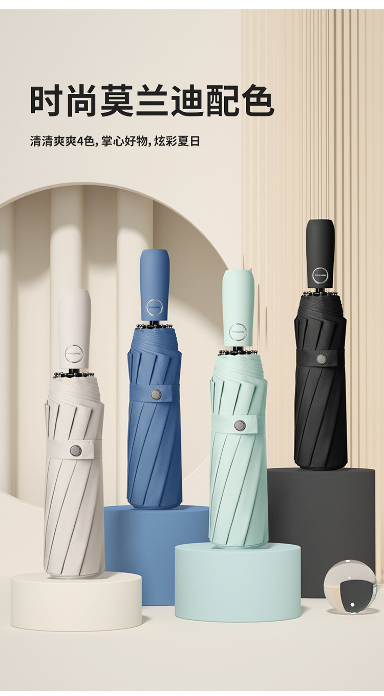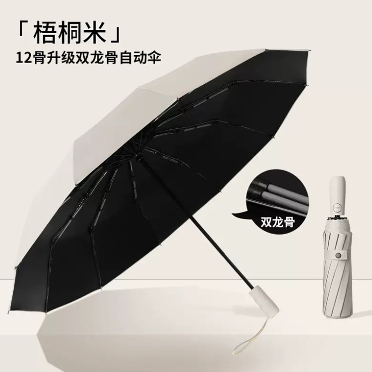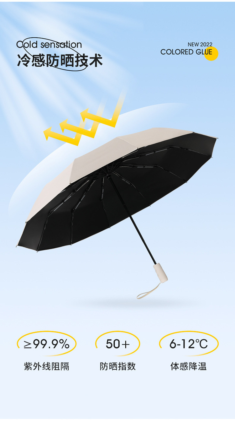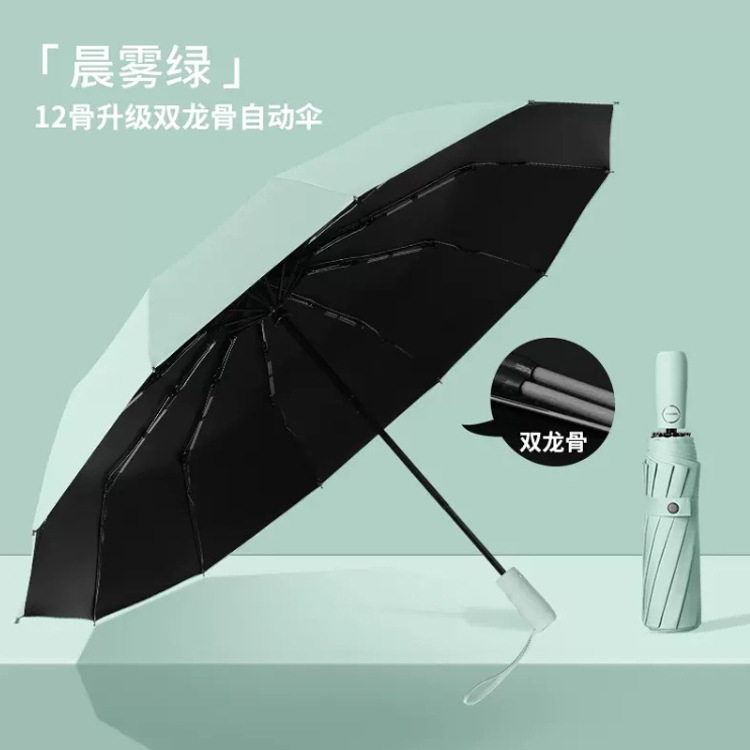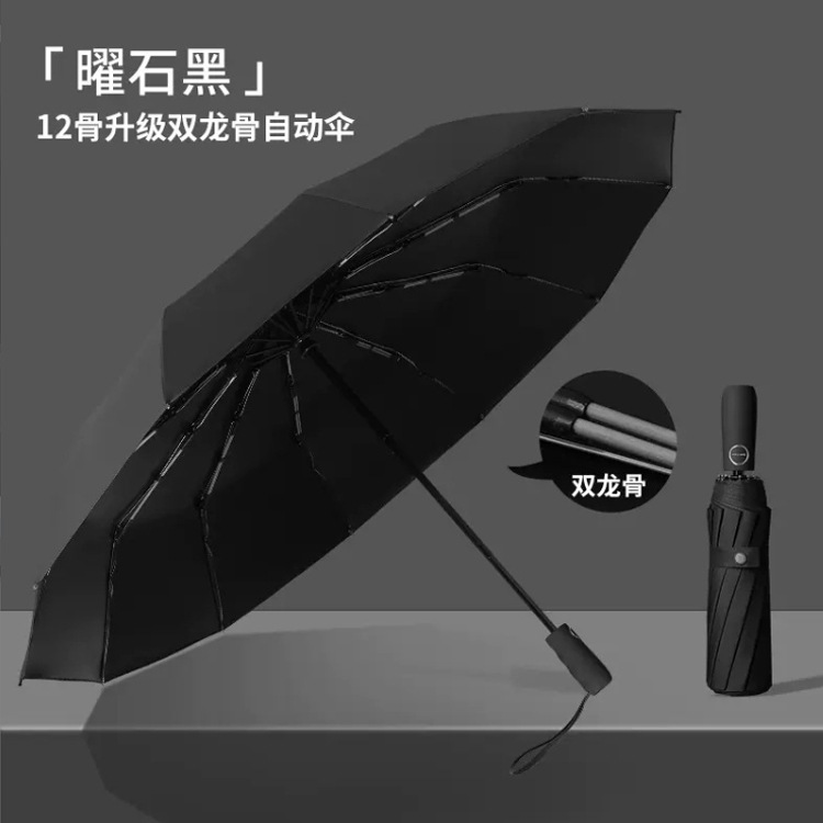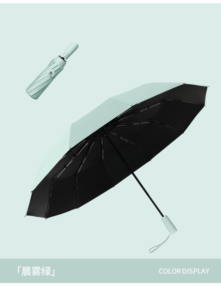 완전 자동 검은 고무 자외선 차단제 및 비 이중 목적 강화 바람 강한 차양 자외선 방지 접이식 태양 우산 제조 업체스토어 가기