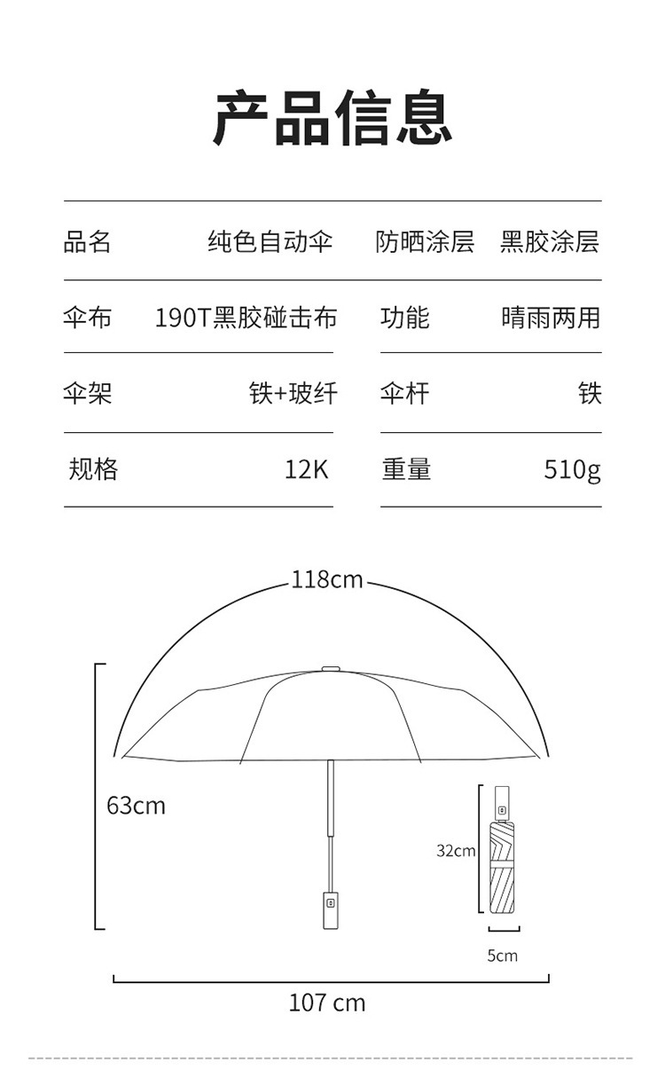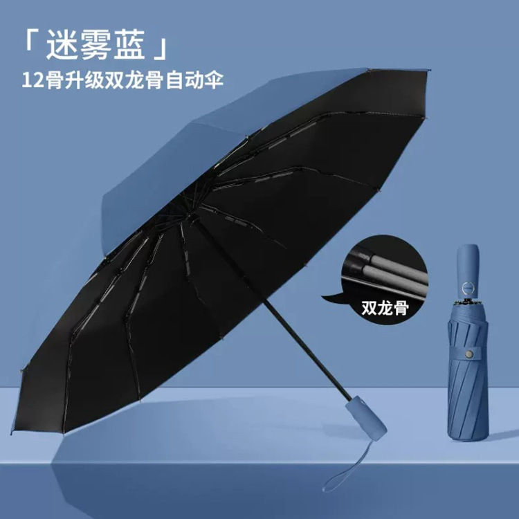 완전 자동 검은 고무 자외선 차단제 및 비 이중 목적 강화 바람 강한 차양 자외선 방지 접이식 태양 우산 제조 업체