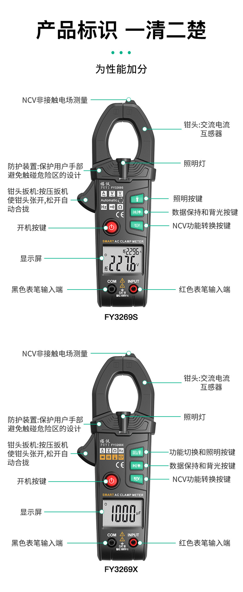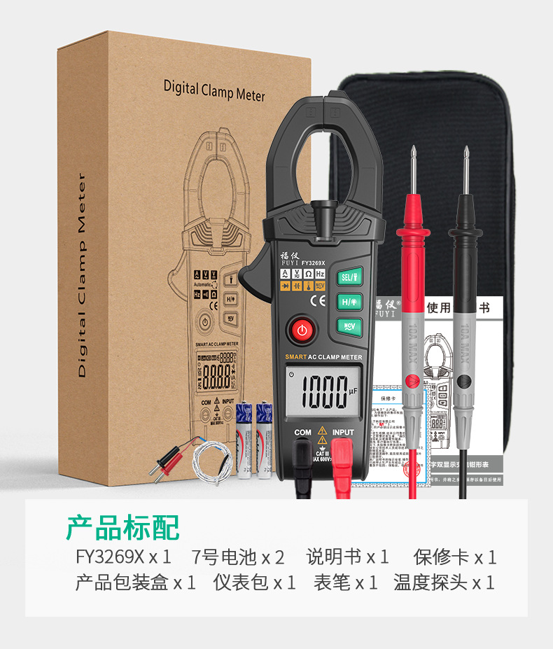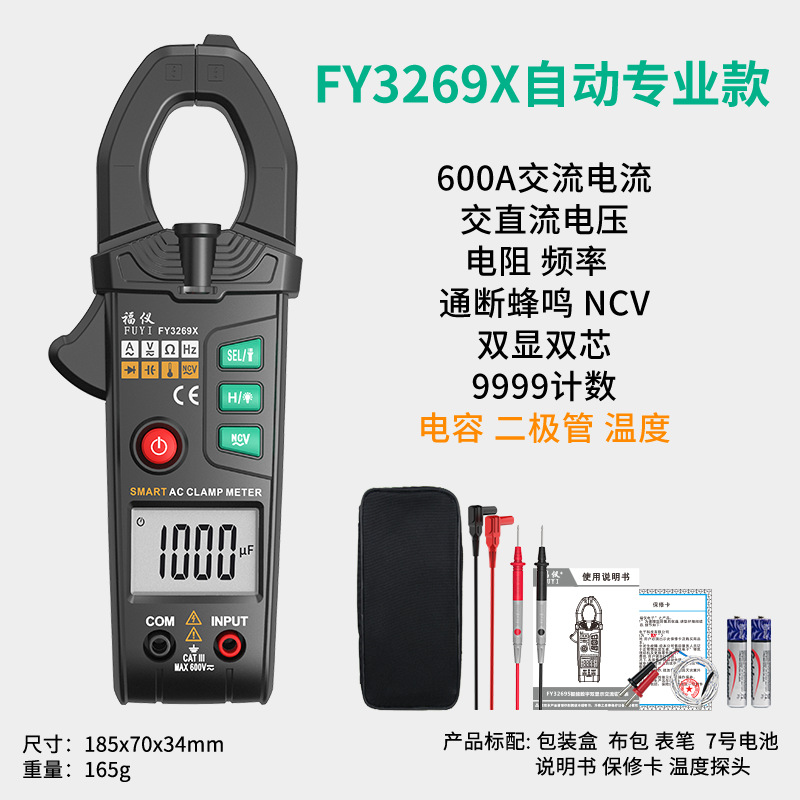Fuyi 지능형 자동 식별 클램프 멀티 미터 다기능 풀 기어 안티 번 전류 고정밀 유니버설 미터