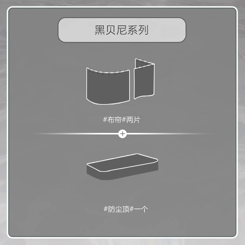• [블랙 앤 그레이 U자형] 커튼 3개 + 탑 + 브라켓