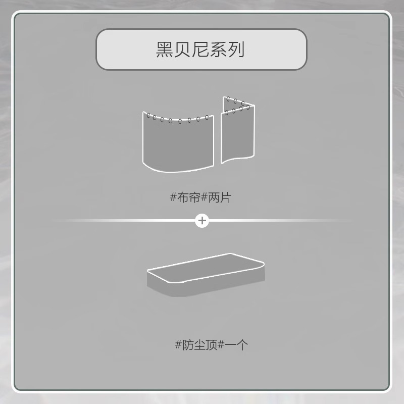 • [블랙 앤 그레이 U자형] 커튼 2개 + 탑 (브래킷 제외)