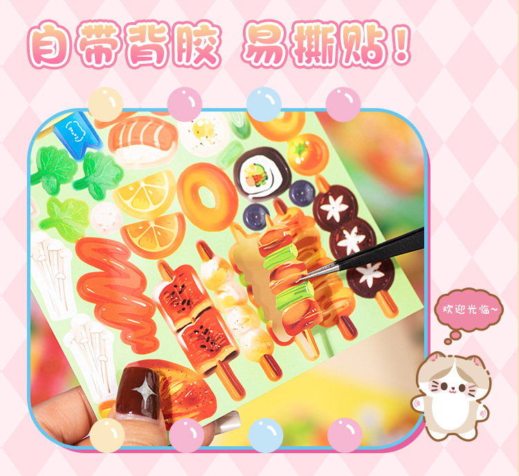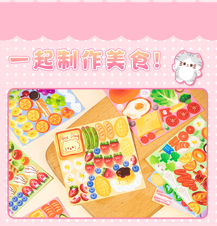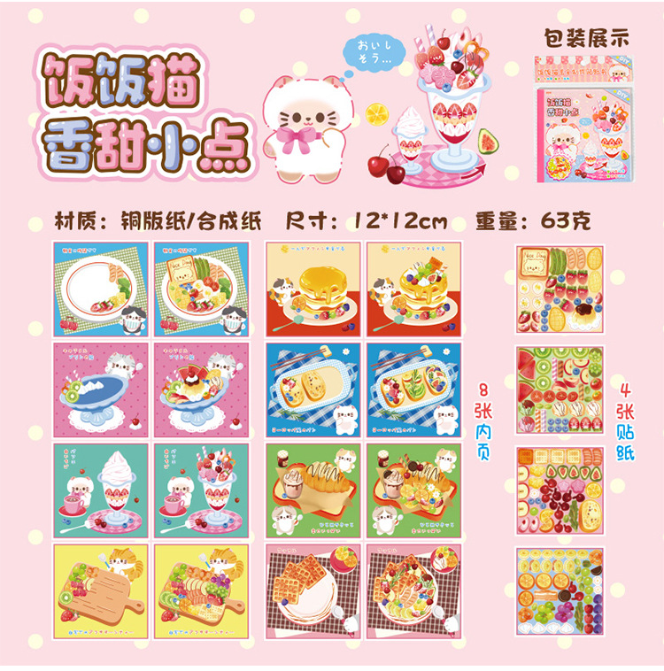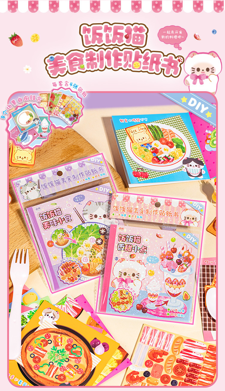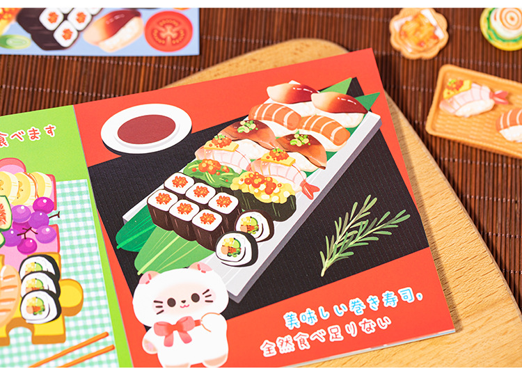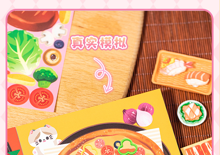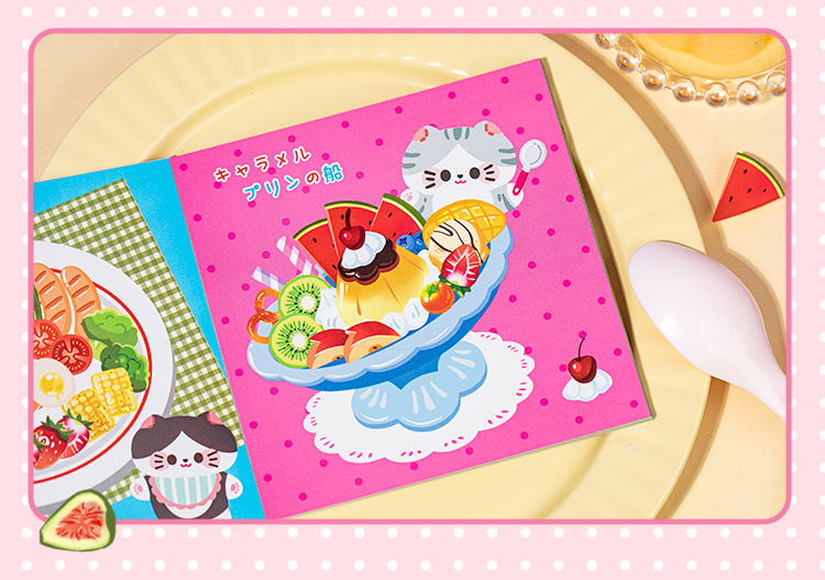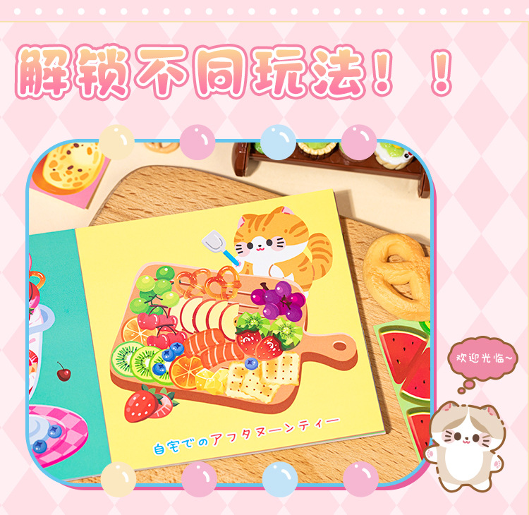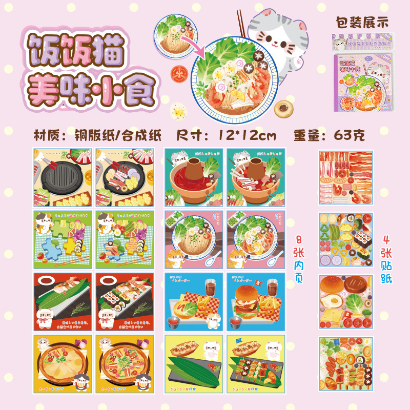 새로운 스티커 책 자석 쌀 쌀 고양이 음식 만들기 조용한 책 창조적 인 장난감 소녀 수제 DIY 소재 가방스토어 가기