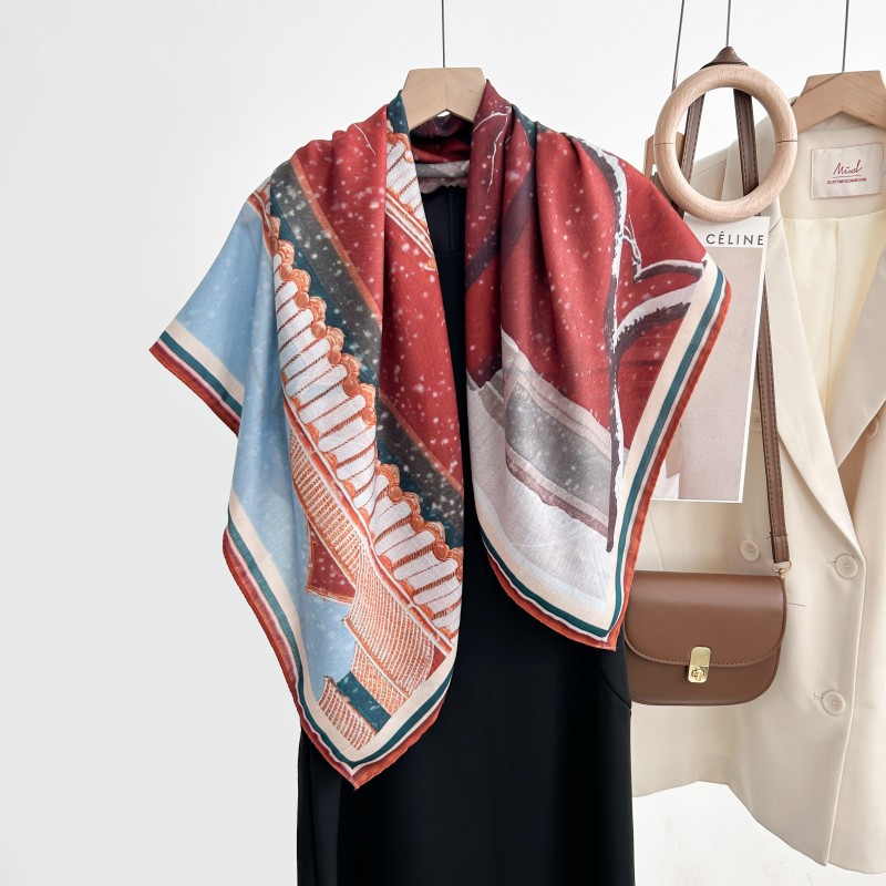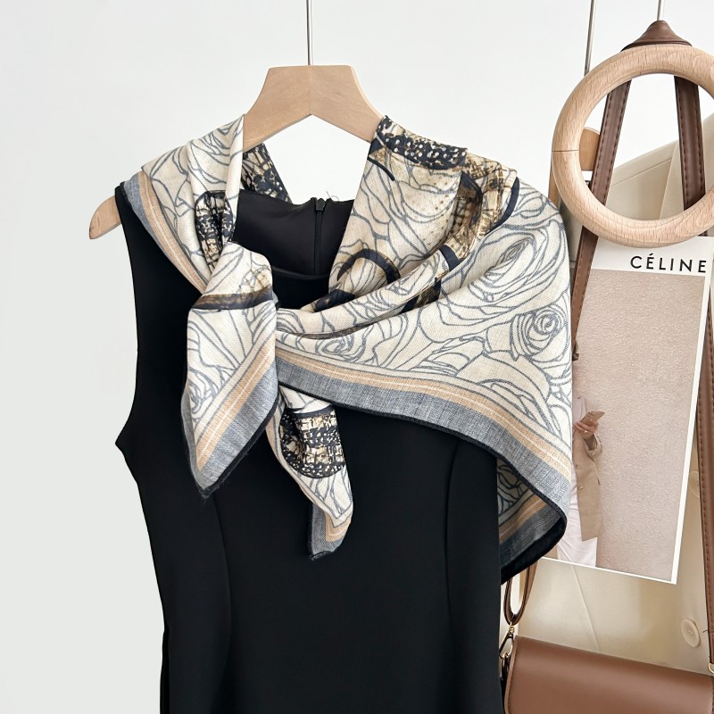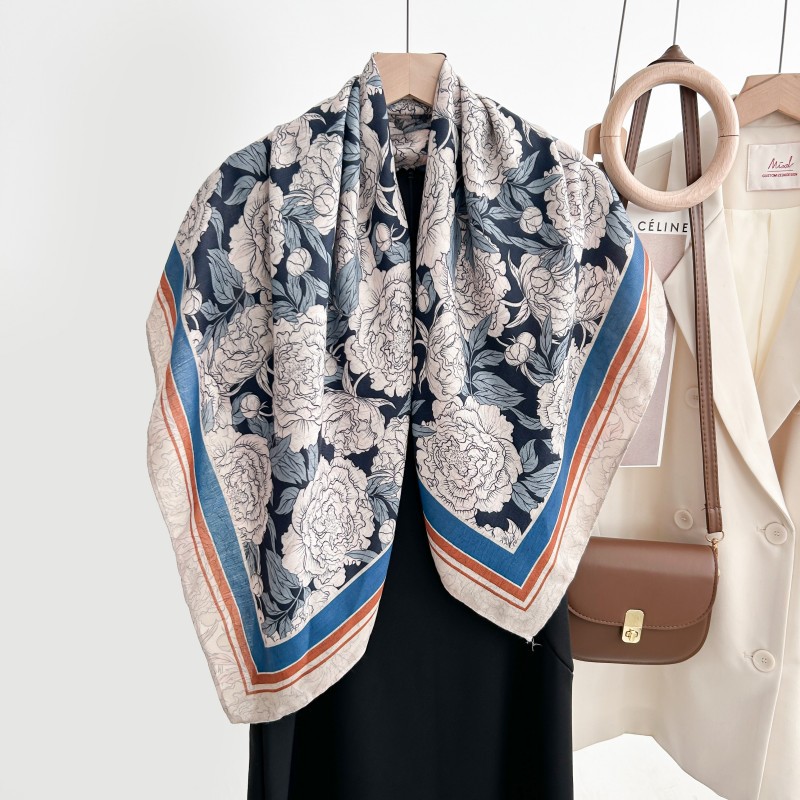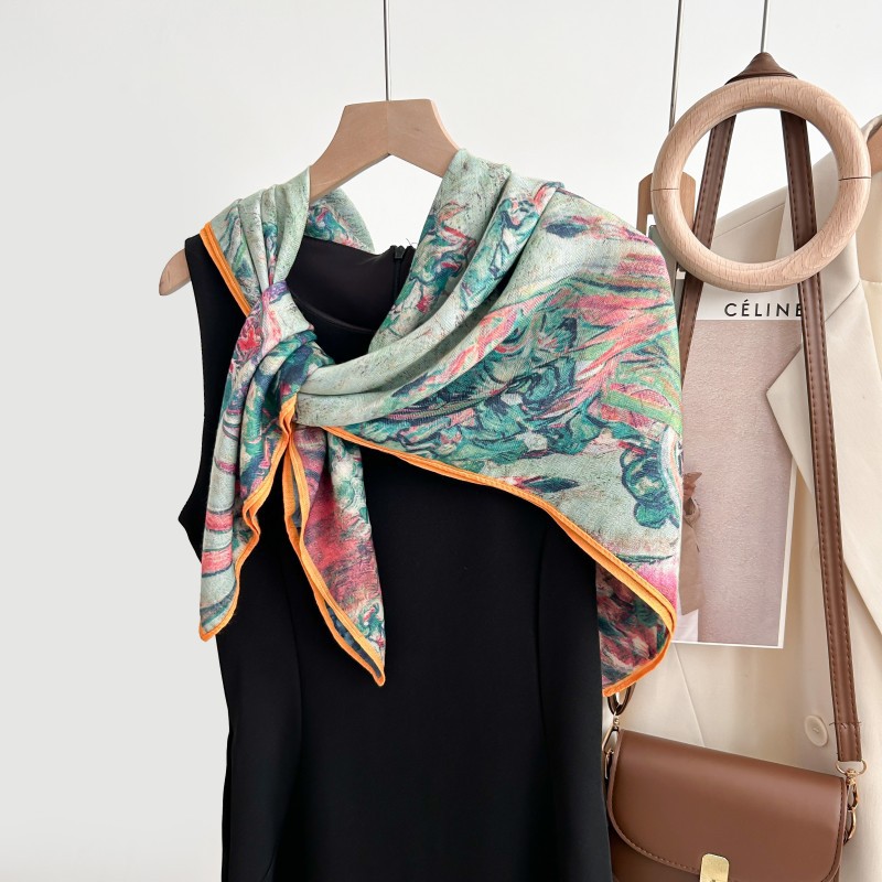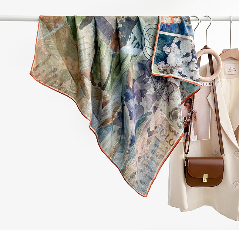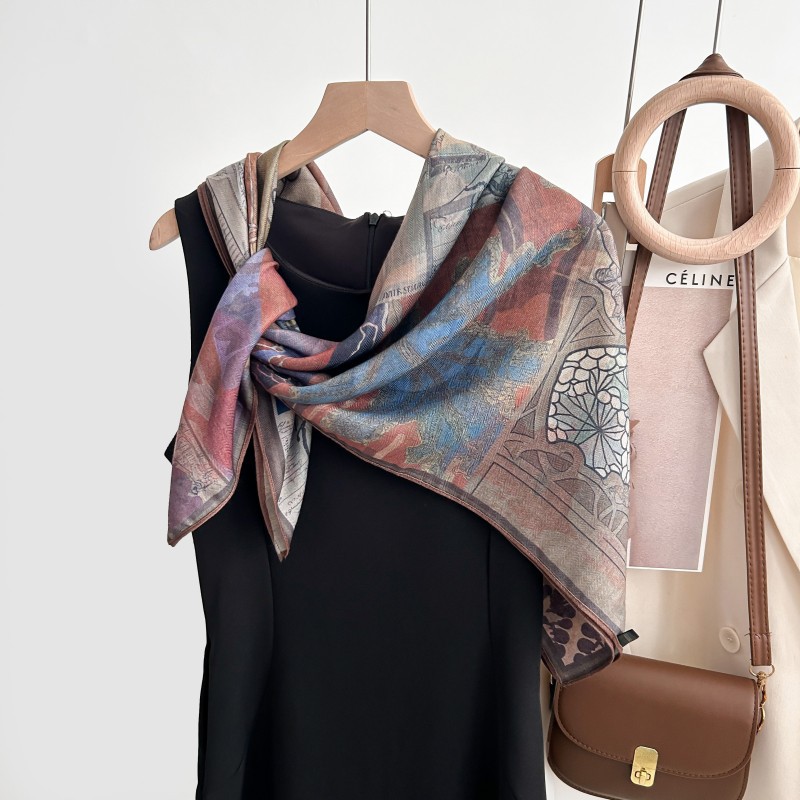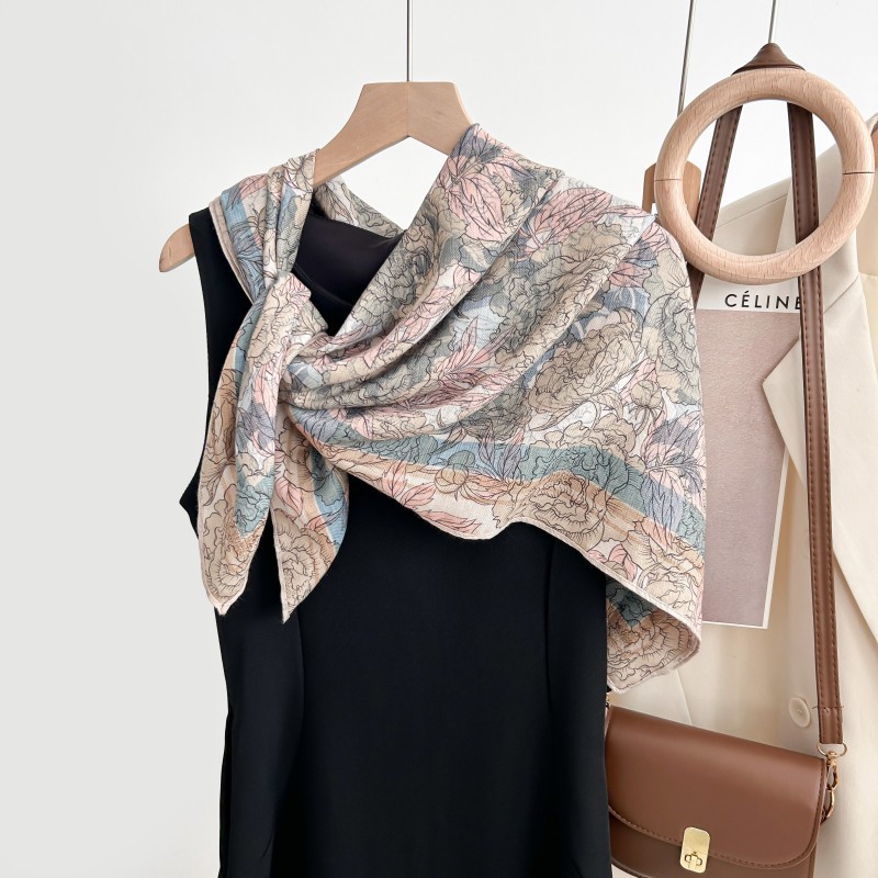 새로운 스타일 내셔널 스타일 하이 엔드 레트로 숄 실크 헤어 질감 힙 스카프 라이트 럭셔리 스타일 새로운 중국 스타일 따뜻한 여성 스카프