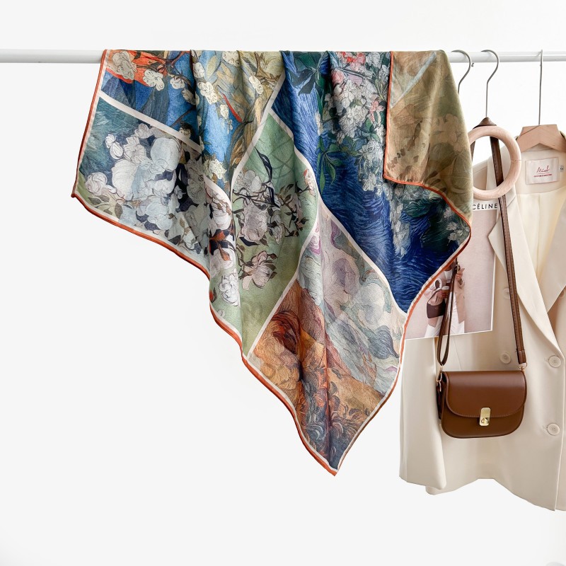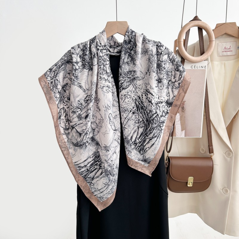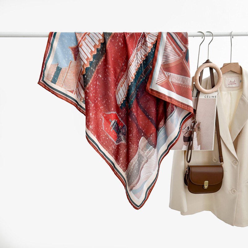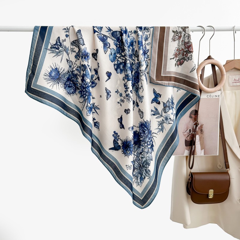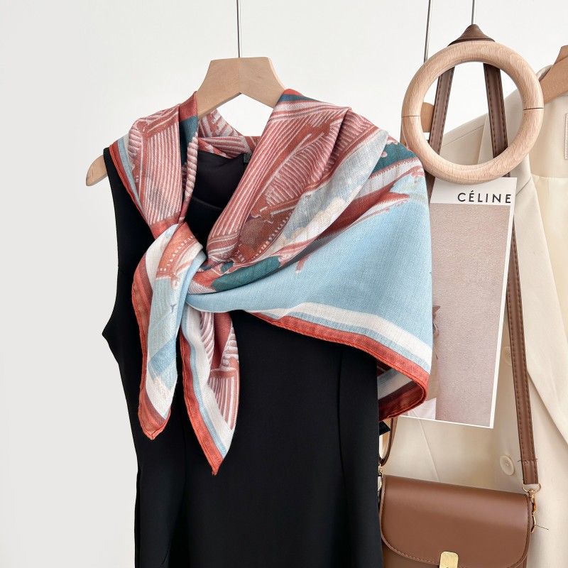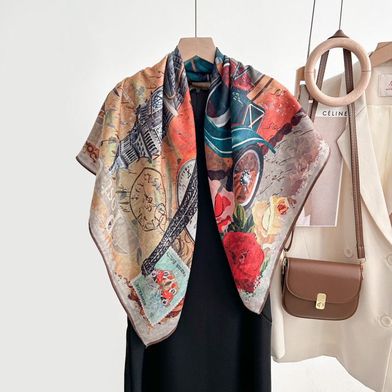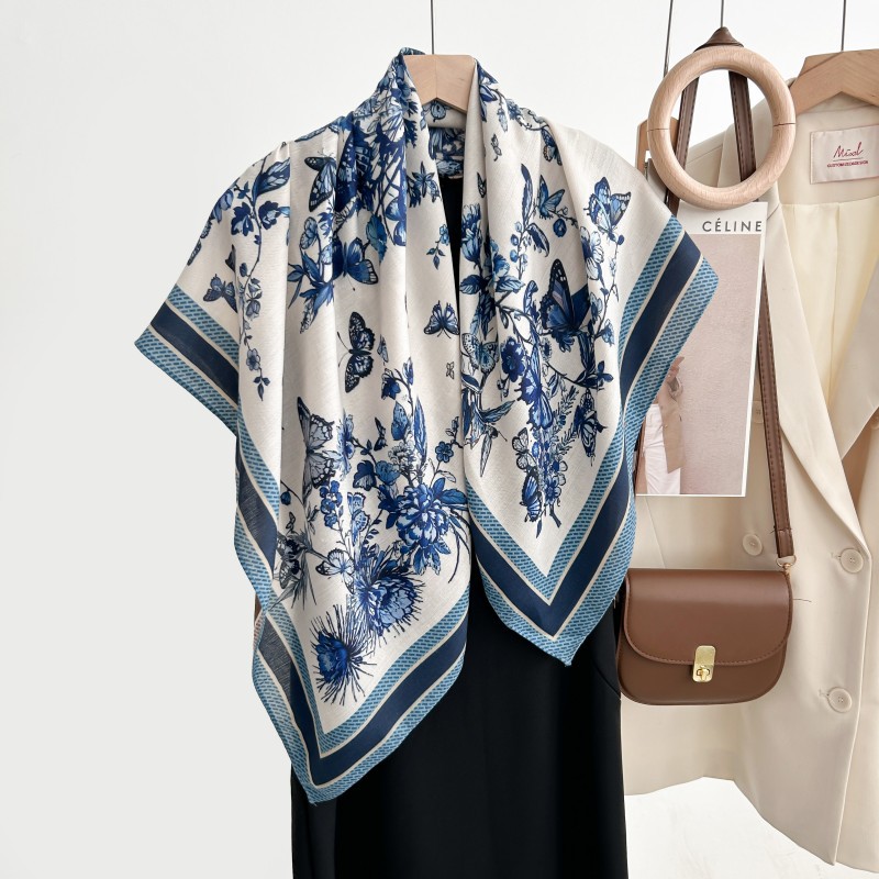 새로운 스타일 내셔널 스타일 하이 엔드 레트로 숄 실크 헤어 질감 힙 스카프 라이트 럭셔리 스타일 새로운 중국 스타일 따뜻한 여성 스카프