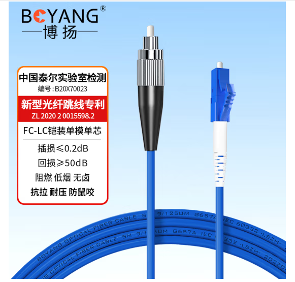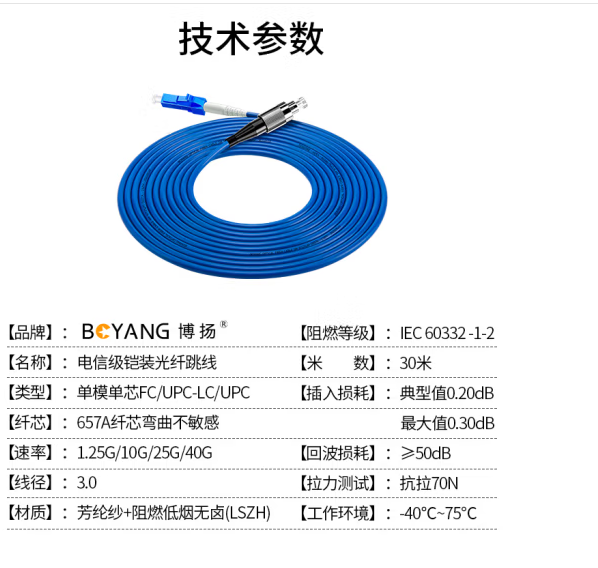 博扬(BOYANG)BY-K30351S 电信级铠装光纤跳线fc-lc 30米 单模单芯 抗拉压防鼠咬低烟无卤环保网线光纤线