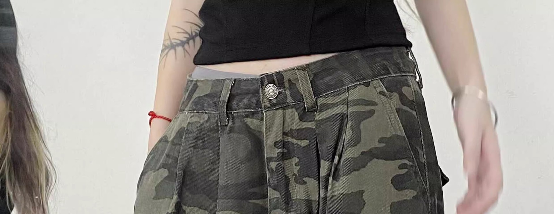 미국 복고풍 위장 작업복 캐주얼 바지 여성의 봄 폐기물 지구 스타일 거리 뜨거운 소녀 느슨한 직선 다리 넓은 다리 유행 바지스토어 가기