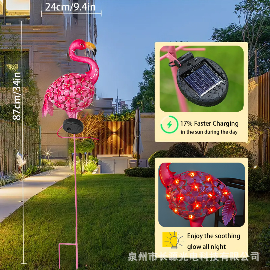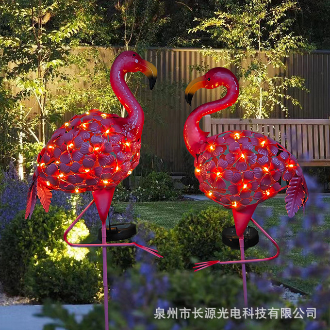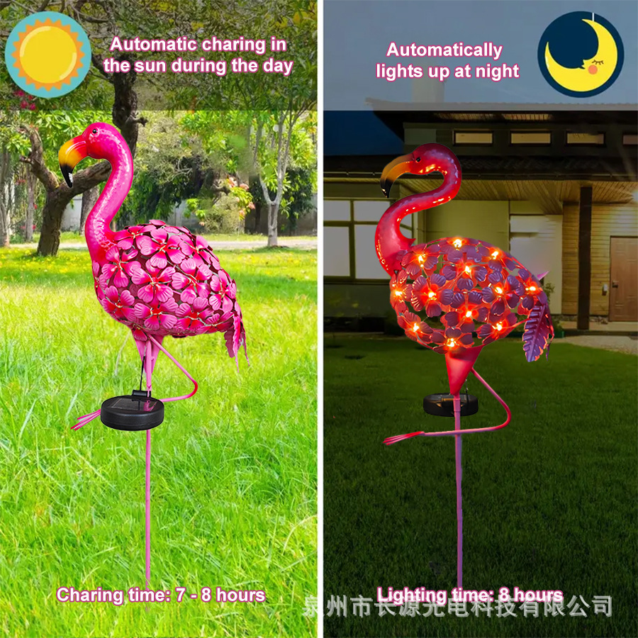 국경 간 새로운 야외 태양 플라밍고 철 바닥 빛 안뜰 잔디 빛 정원 장식 공예