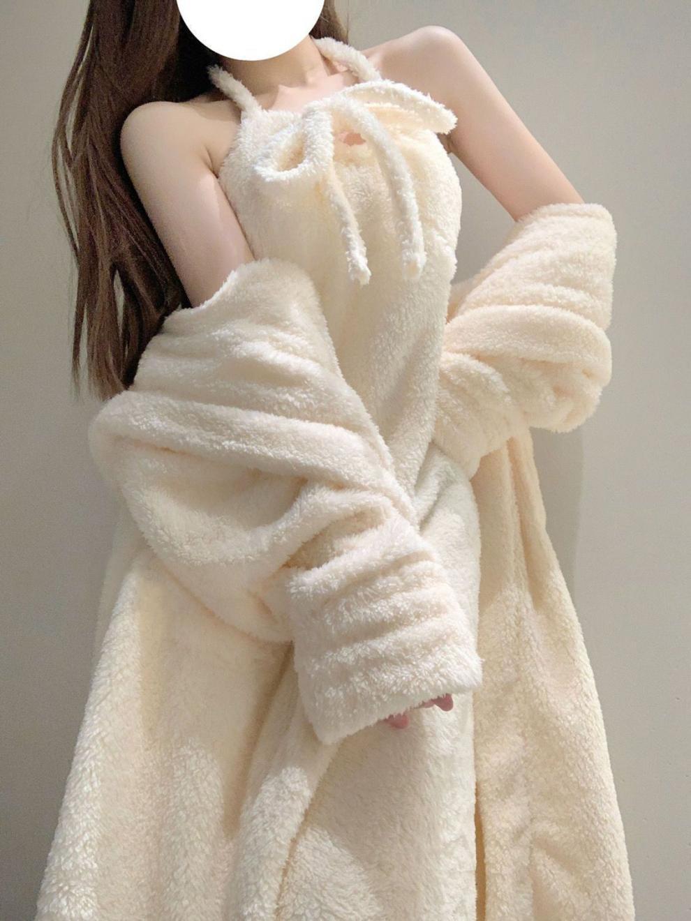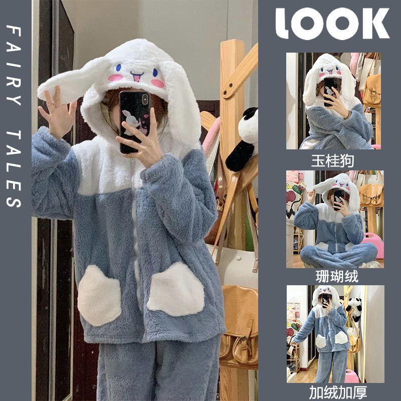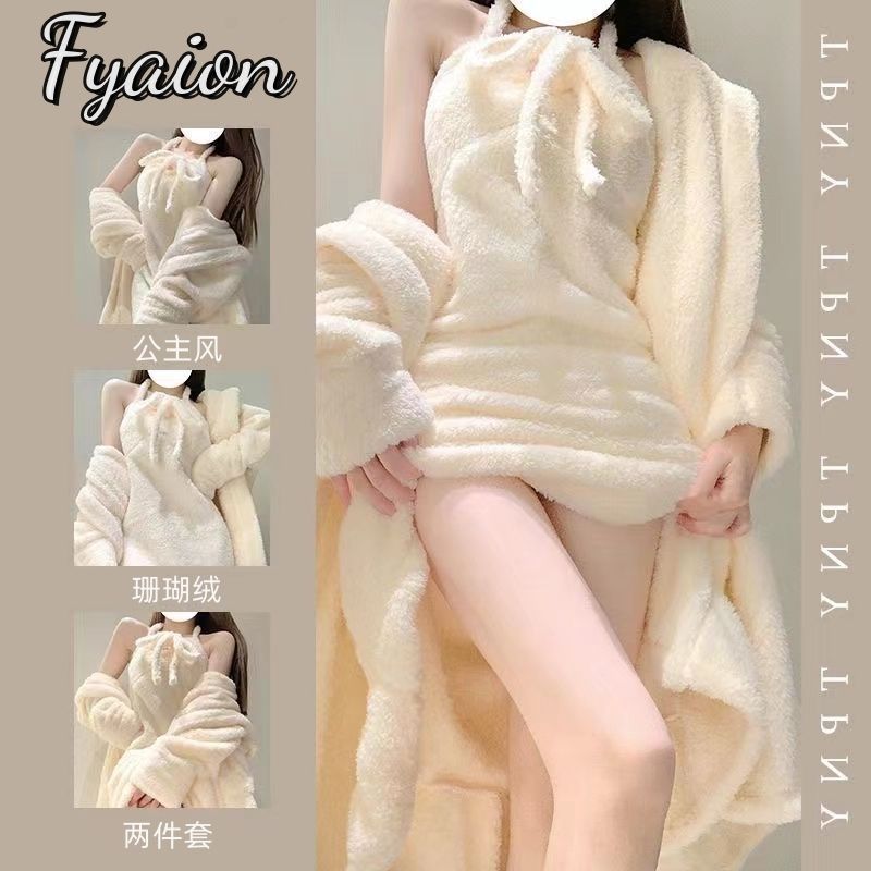 산호 양털 겨울 잠옷 여성 기모 두꺼운 플란넬 순수한 욕망 슬링 잠옷 홈웨어 세트 아우터웨어스토어 가기