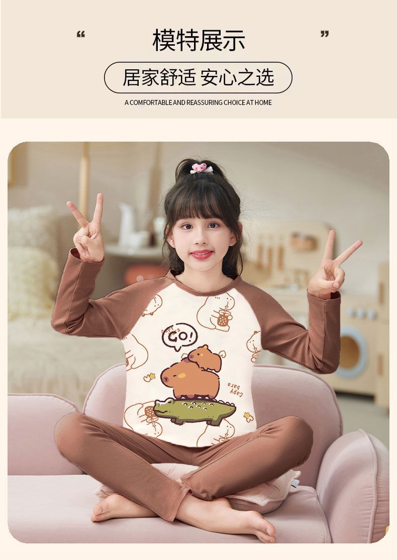 소녀 잠옷 만화 귀여운 둥근 목 가을과 겨울 두꺼운 열 속옷 큰 어린이 소녀 아기 집 옷스토어 가기