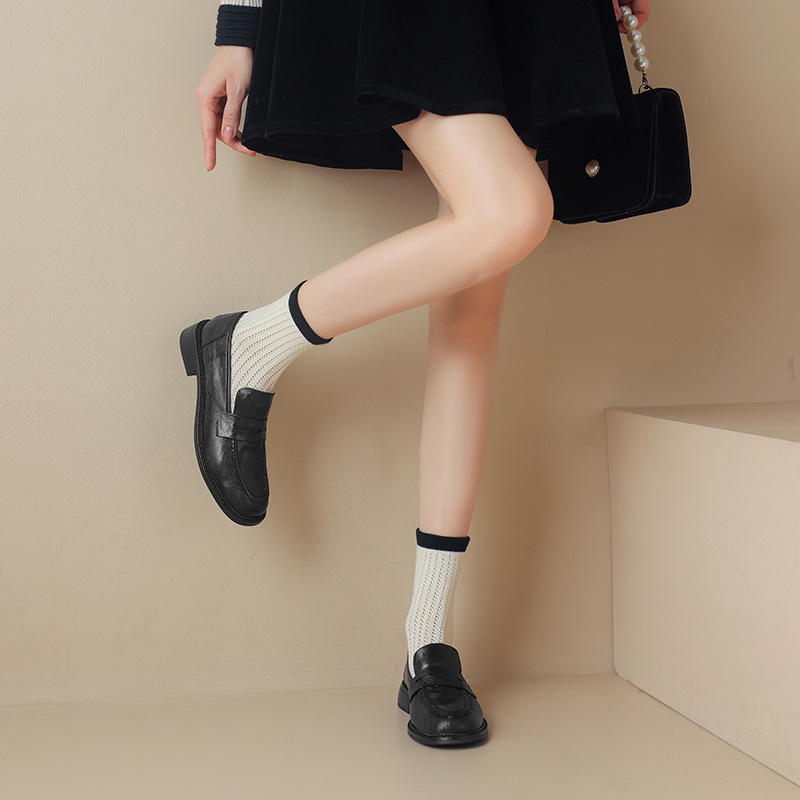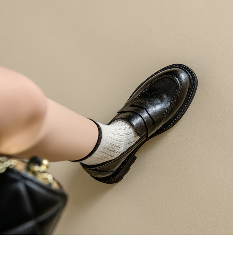 거친 뒤꿈치 작은 가죽 신발 2024 새로운 가을과 겨울 복고풍 다목적 로퍼 미드 힐 라운드 토 영국 스타일의 가죽 싱글 레이어 신발 여성용스토어 가기