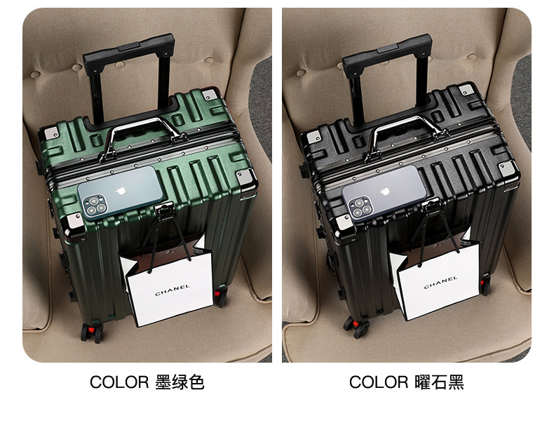 여성용 가방 2025 새로운 무소음 범용 휠, 견고하고 내구성이 뛰어난 대용량 알루미늄 프레임 남성용 비밀번호 트롤리 가방