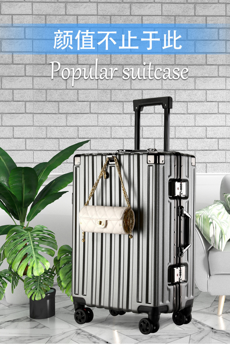여성용 가방 2025 새로운 무소음 범용 휠, 견고하고 내구성이 뛰어난 대용량 알루미늄 프레임 남성용 비밀번호 트롤리 가방스토어 가기