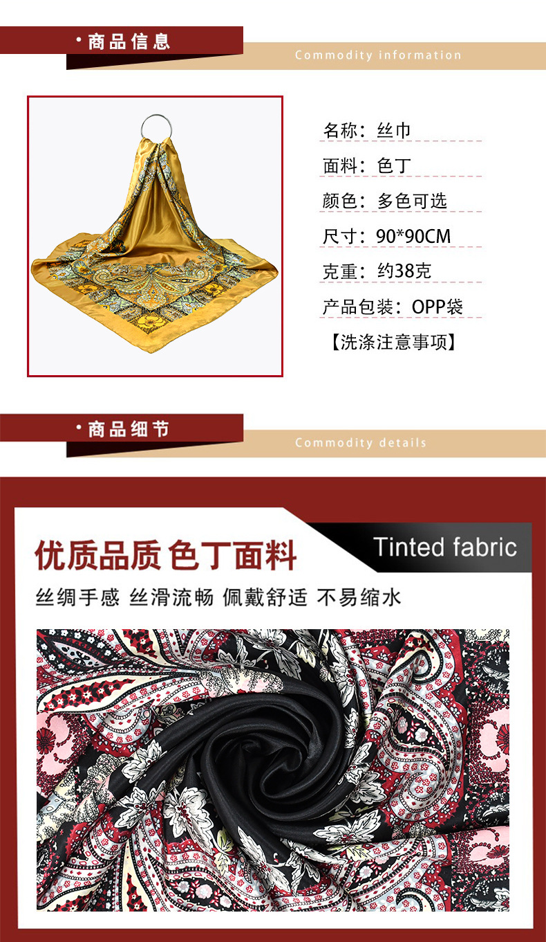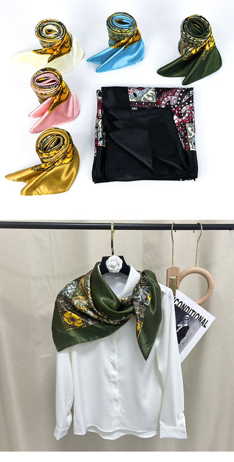 미국 복고풍 90 평방 유럽과 미국의 국경 간 캐슈 꽃 새틴 스카프 트렌드 조커 스카프 숄 도매스토어 가기