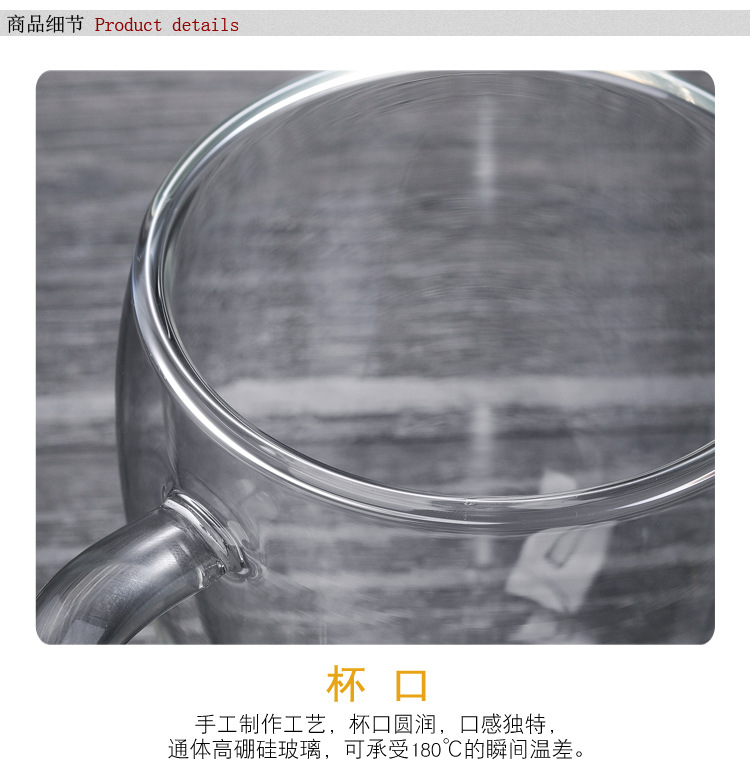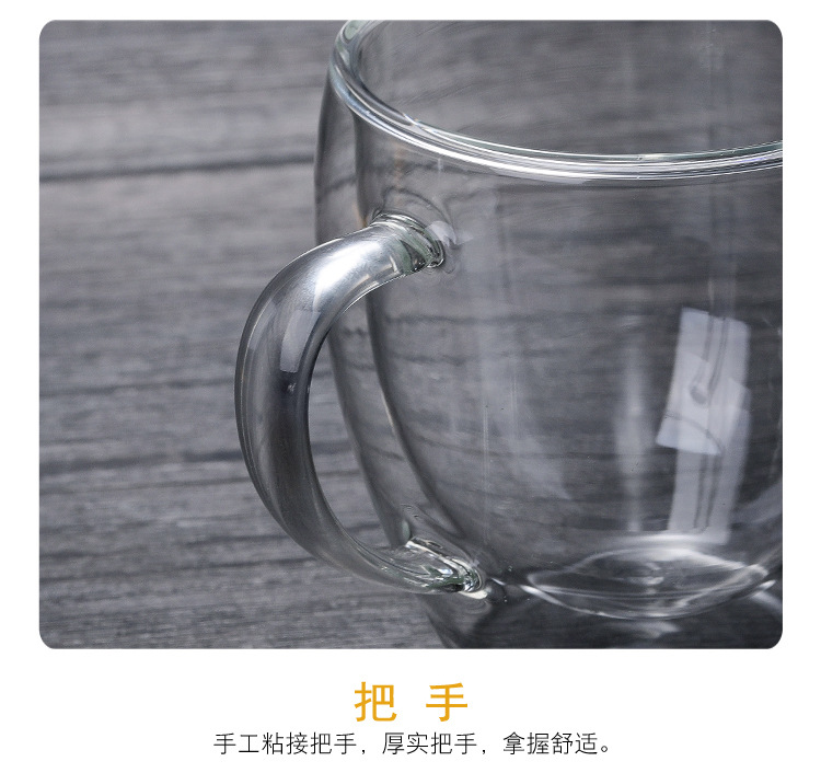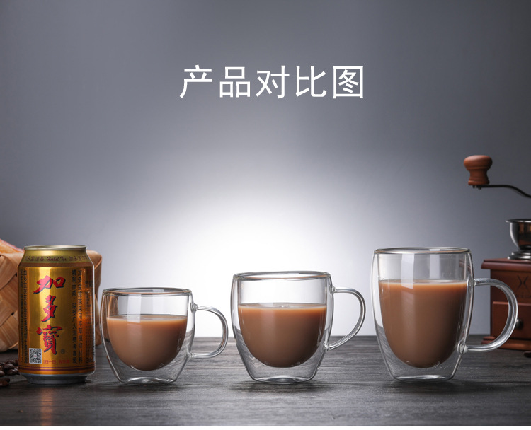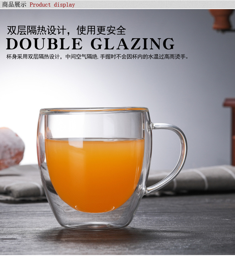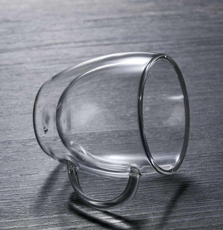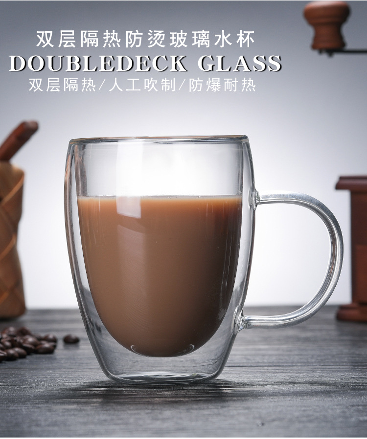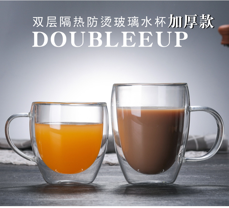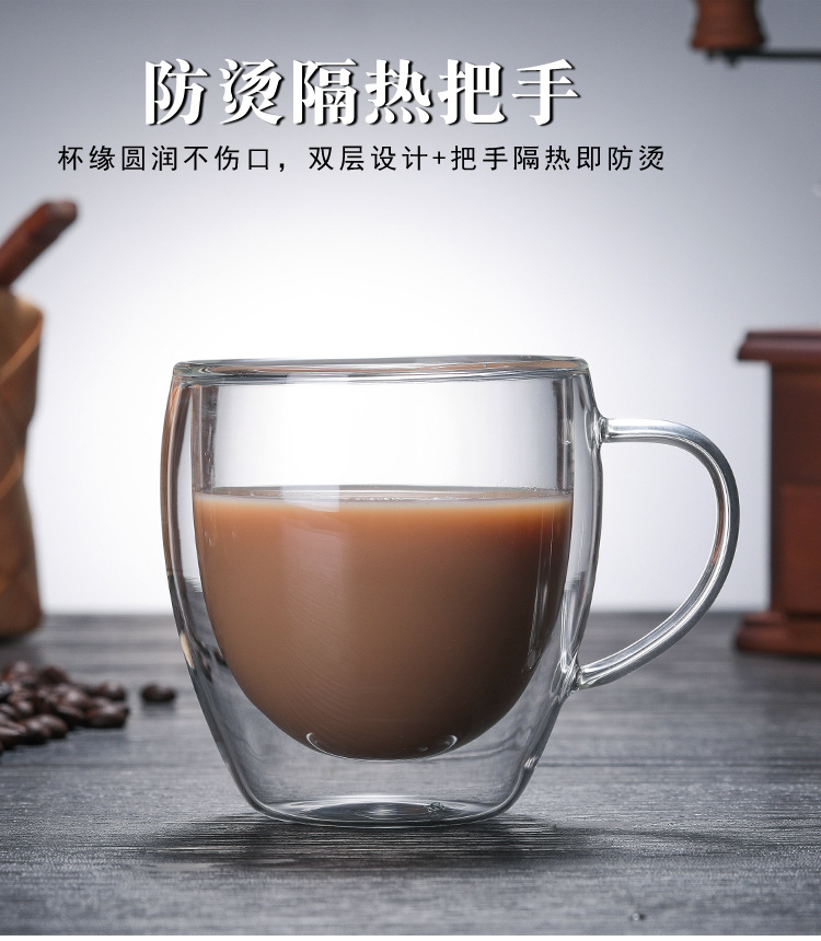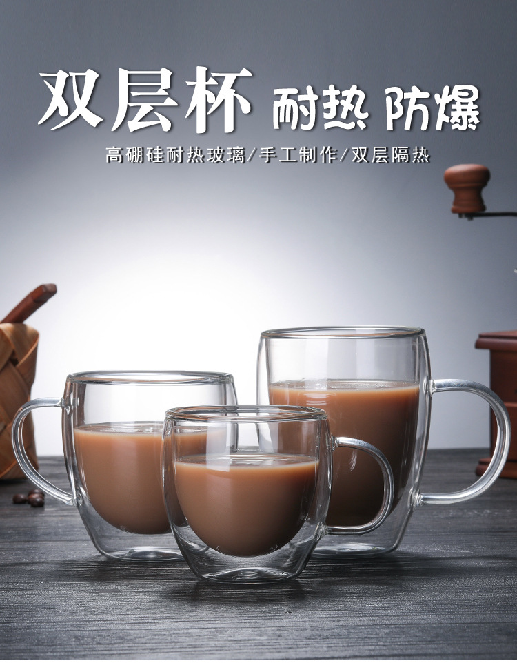 투명 유리 더블 레이어 컵 가정용 유리 우유 차 손잡이를 가진 간단한 커피 마시는 컵 열 절연 티 컵