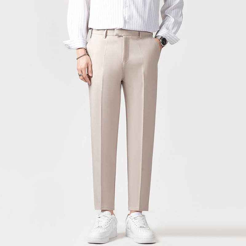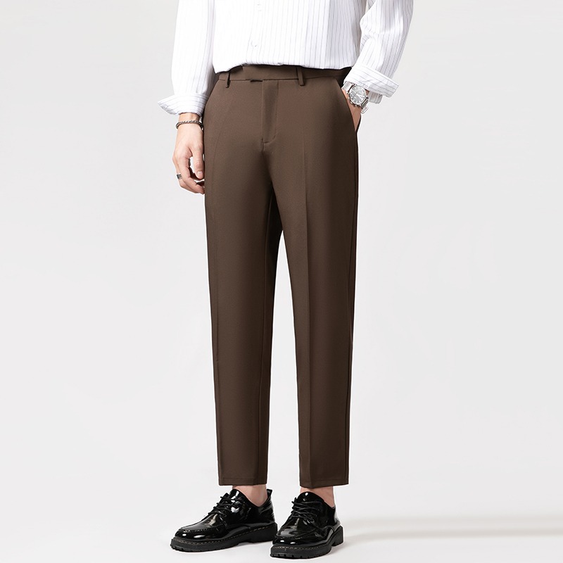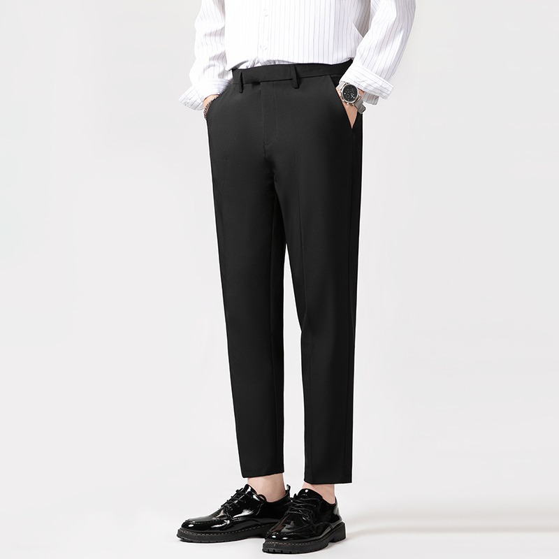 하이 엔드 세트 긴 바지 남자의 가벼운 성숙한 스타일 슬림 핏 작은 바지 웨딩 약혼 사업 캐주얼 주름 방지 발목 바지스토어 가기