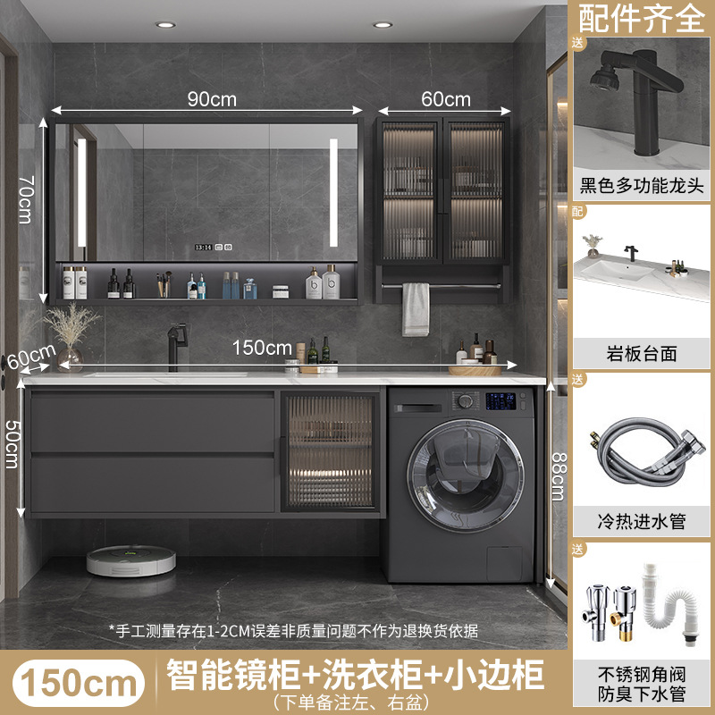 • 150cm 스마트 거울 캐비닛 + 사이드 캐비닛 + 슬레이트 세라믹 세면대