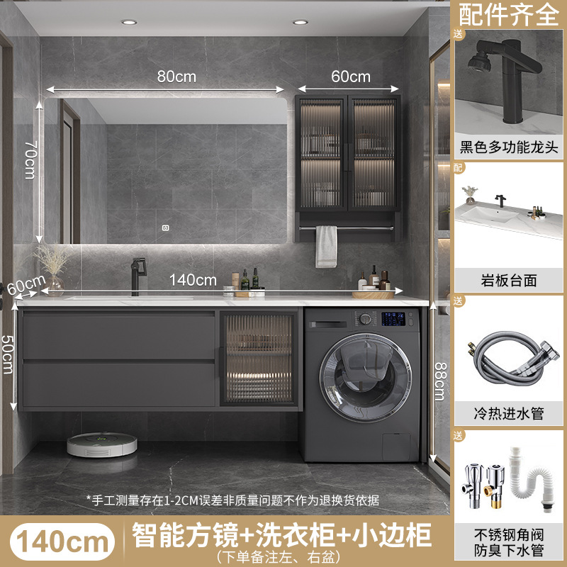 • 140cm 스마트 거울 캐비닛 + 사이드 캐비닛 + 슬레이트 세라믹 세면대