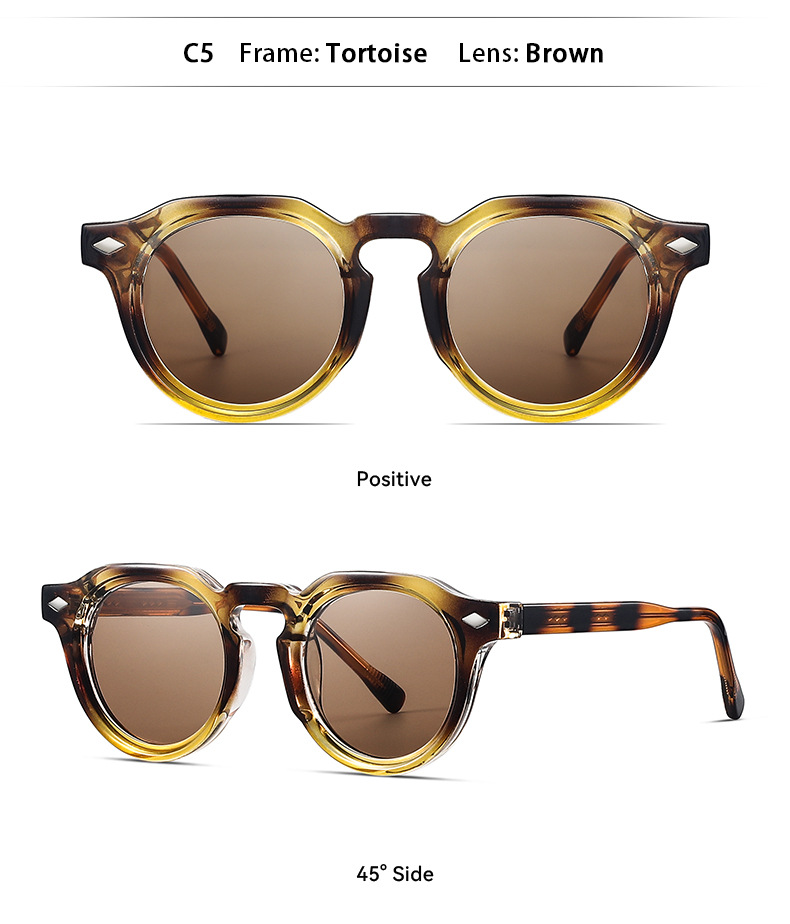 2025 새로운 국경 선글라스 자외선 방지 여성과 남성 복고풍 프로피오닉 핀 라운드 프레임 유럽과 미국 선글라스스토어 가기