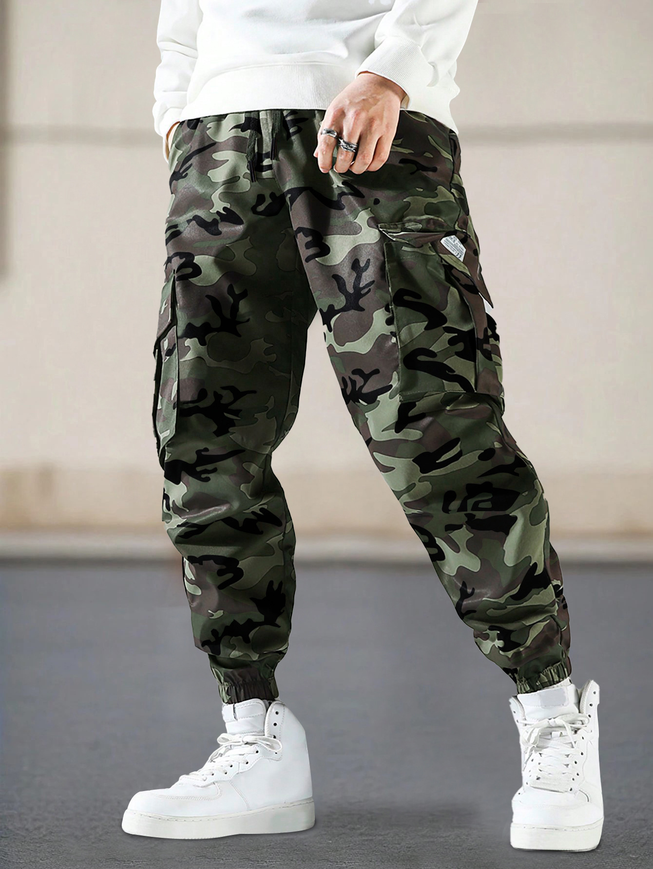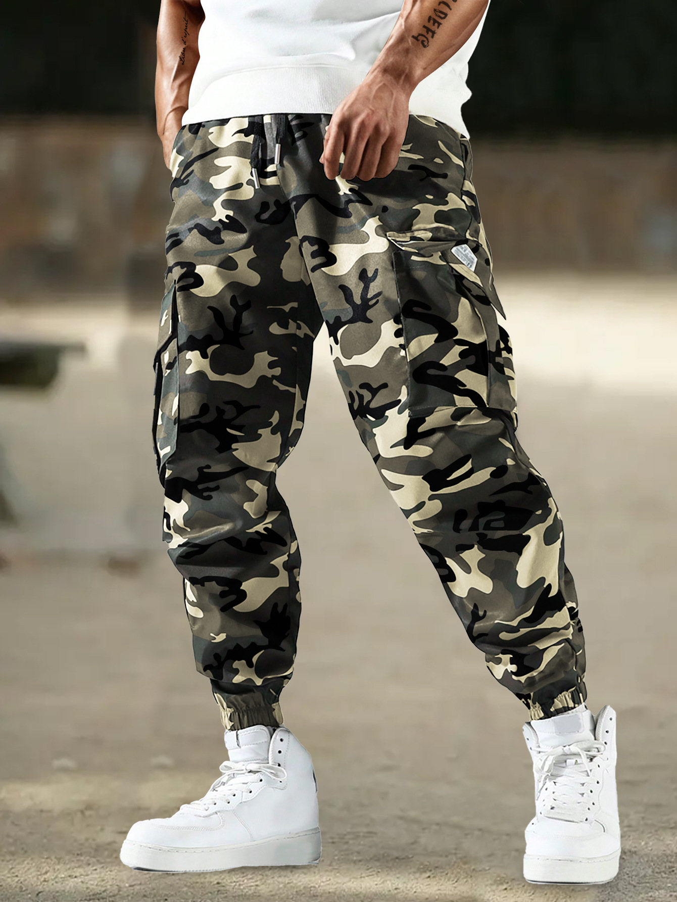국경 간 남성 패션 위장 크레인 바지 사이드 포켓 캐주얼 정사이즈 핏 바지 남성 야외 활동 바지스토어 가기