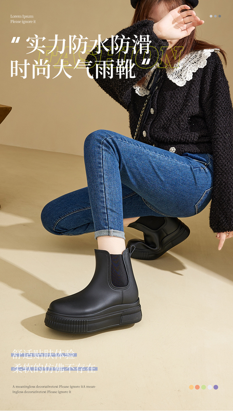 Elastomy Mouth Rain Boots 새로운 중저가 장화 첼시 방수 미끄럼 비 야외 웨어러블 두꺼운 싱글 미드 로우 부츠