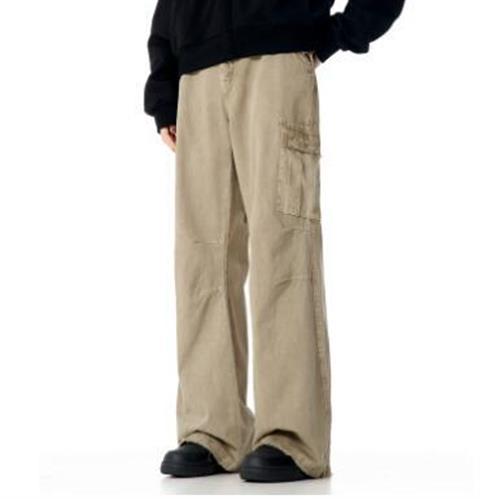 미국식 하이 스트리트 분위기 복고풍 와이드 레그 스트레이트 디자인 캐주얼 바지 남성 데님 바지 청바지스토어 가기