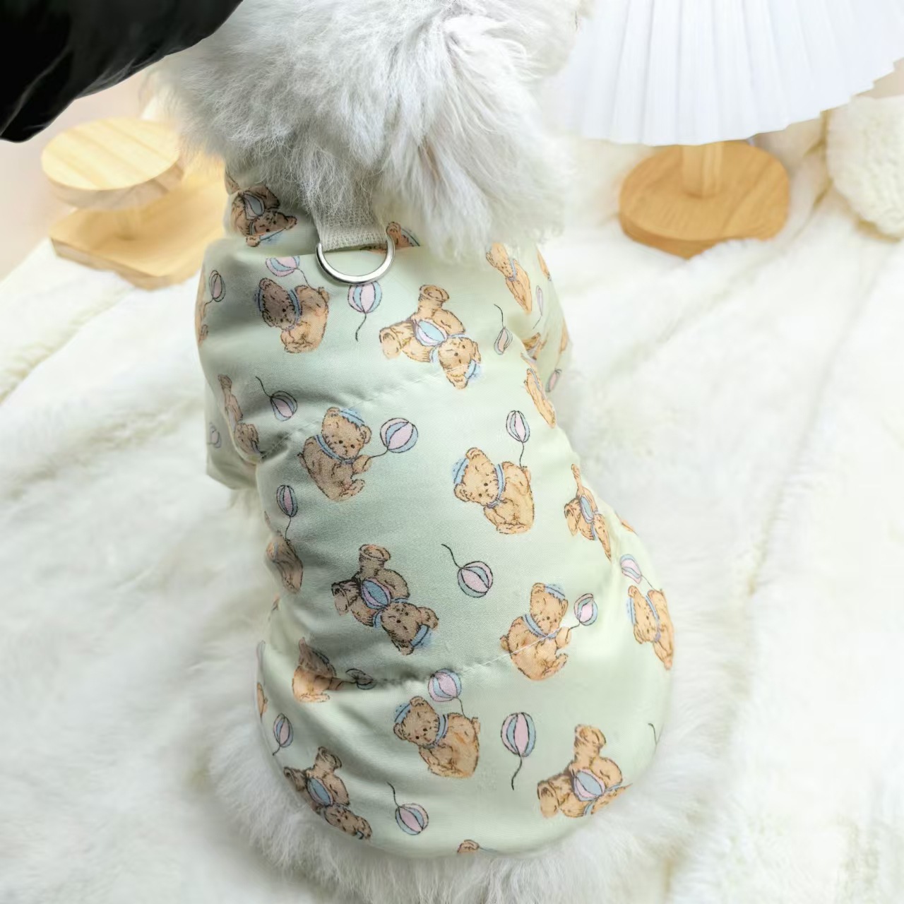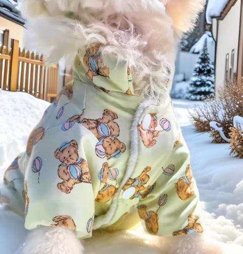 가을과 겨울 애완 동물 고양이와 개 옷 칼라 베어 만화 인쇄 코튼 패딩 코트 빵 옷 겨울 따뜻하게 유지하기 위해 견인 기모스토어 가기