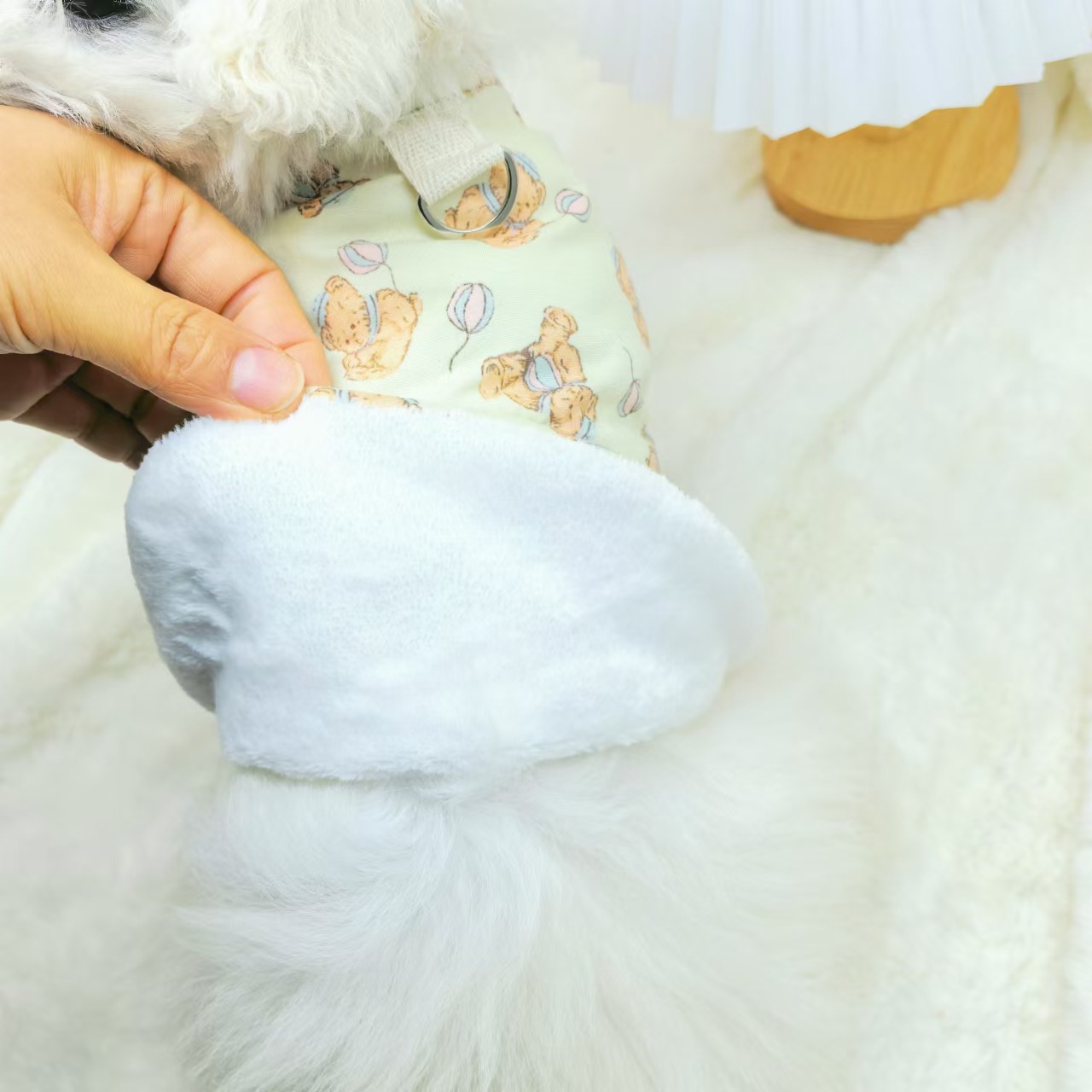 가을과 겨울 애완 동물 고양이와 개 옷 칼라 베어 만화 인쇄 코튼 패딩 코트 빵 옷 겨울 따뜻하게 유지하기 위해 견인 기모