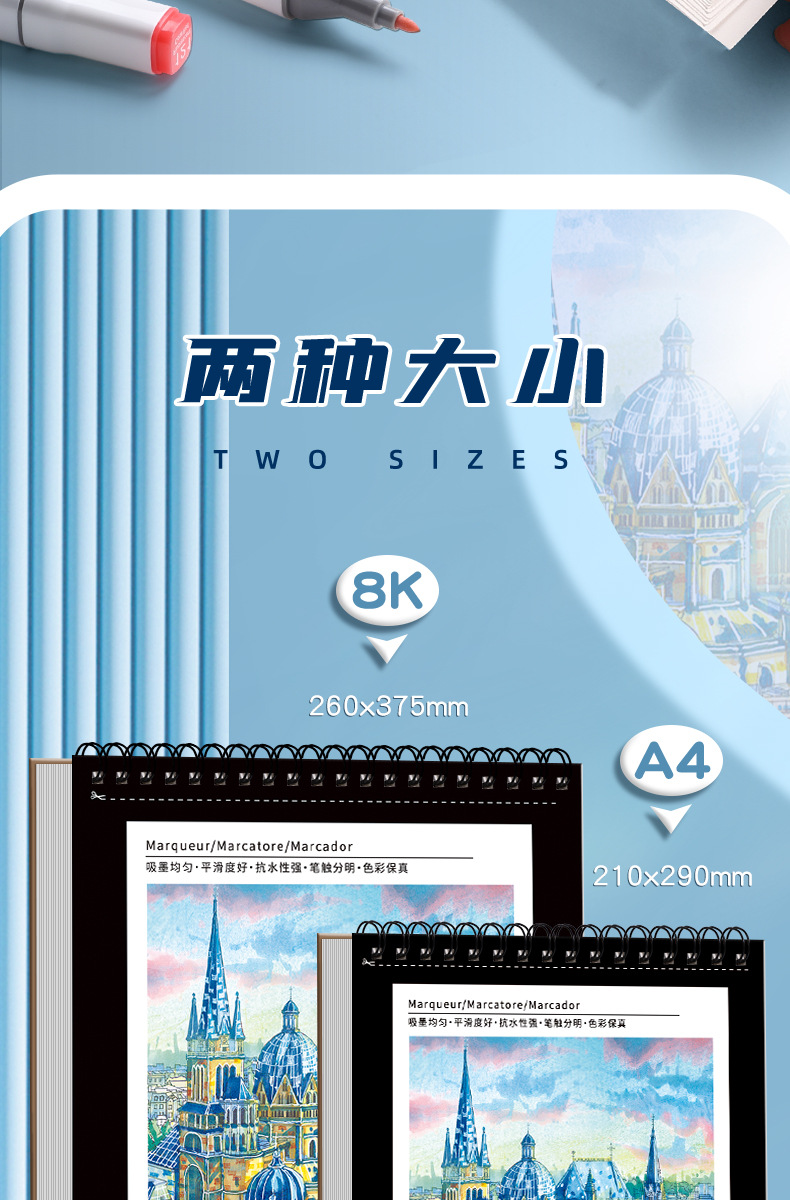 A4 마커 펜 특별 드로잉 북 두꺼운 8K 예술 학생 빈 마커 종이 학생 손으로 그린 마커 펜 드로잉 북스토어 가기