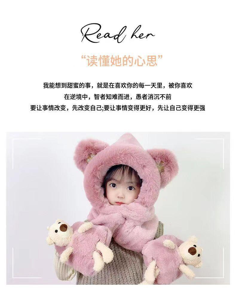 가을 겨울 어린이 모자 스카프 일체형 모자 남녀공용 겨울 두꺼운 3종 세트 방풍 보온 모자 귀 보호 만화