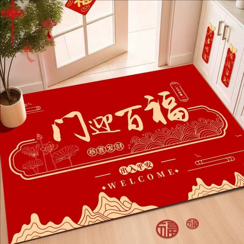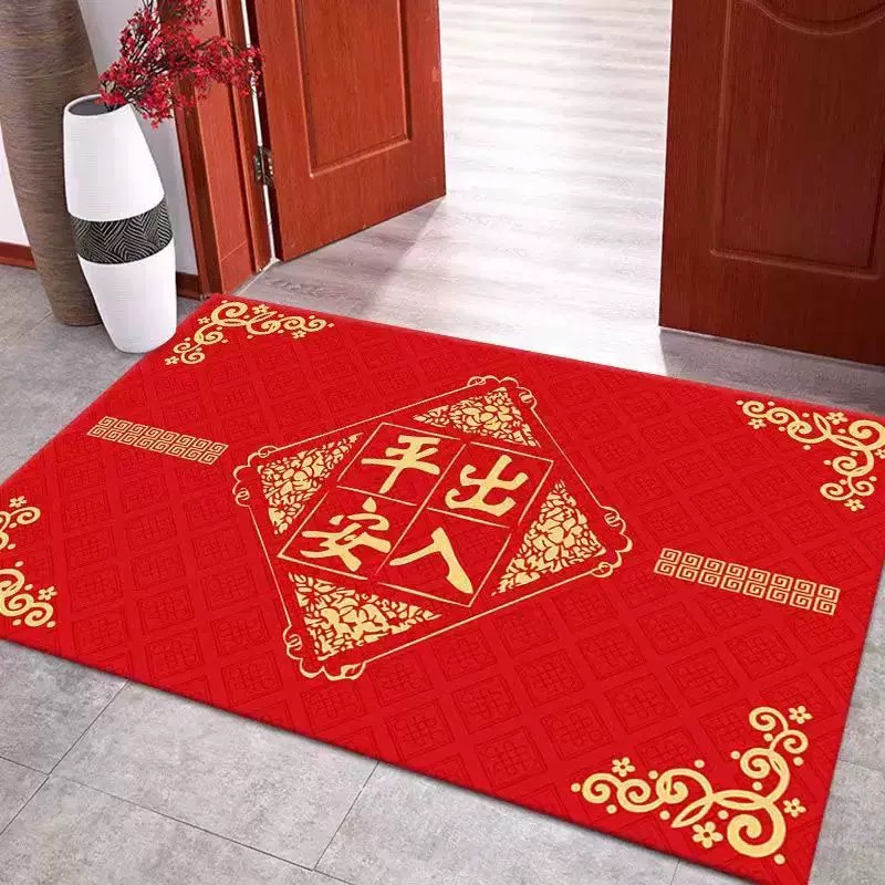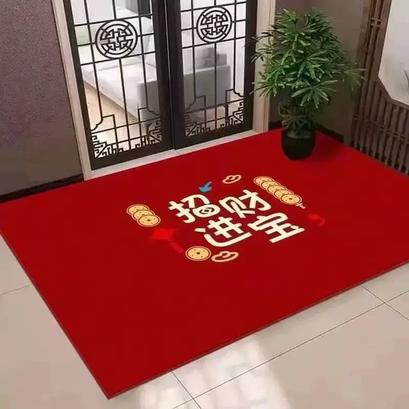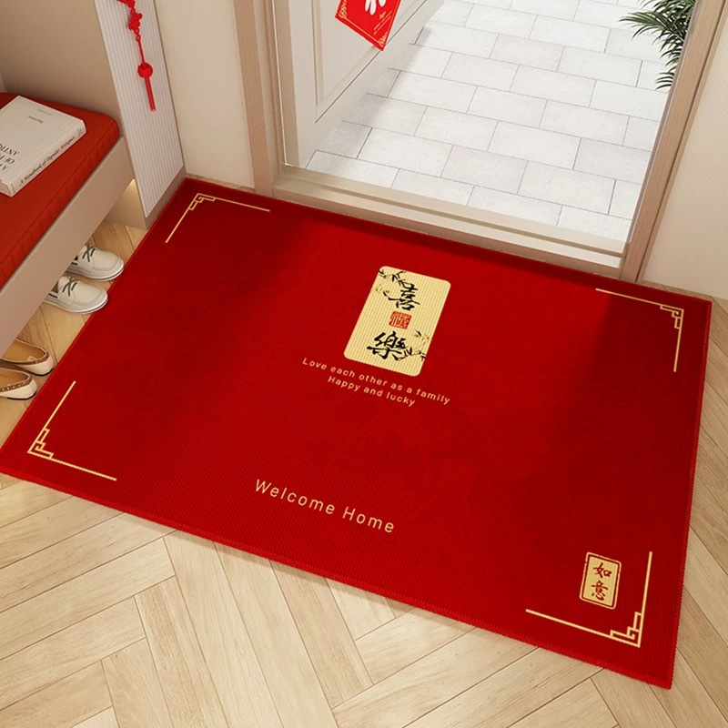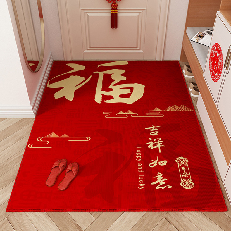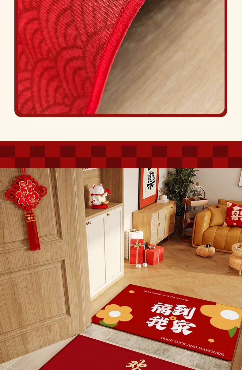 새해 빨간색 현관 매트, 출입문 매트, 미끄럼 방지 발매트, 절단 가능한 카펫 매트, 현관 전용