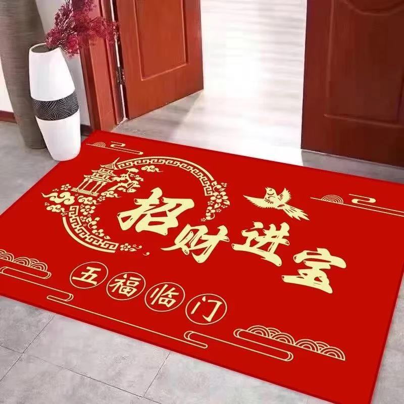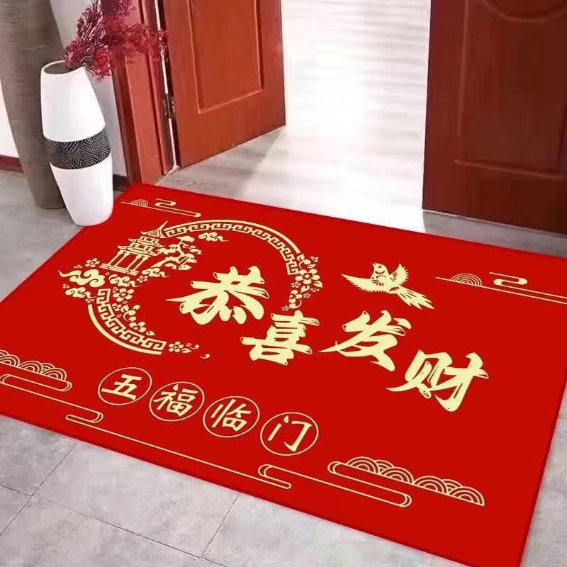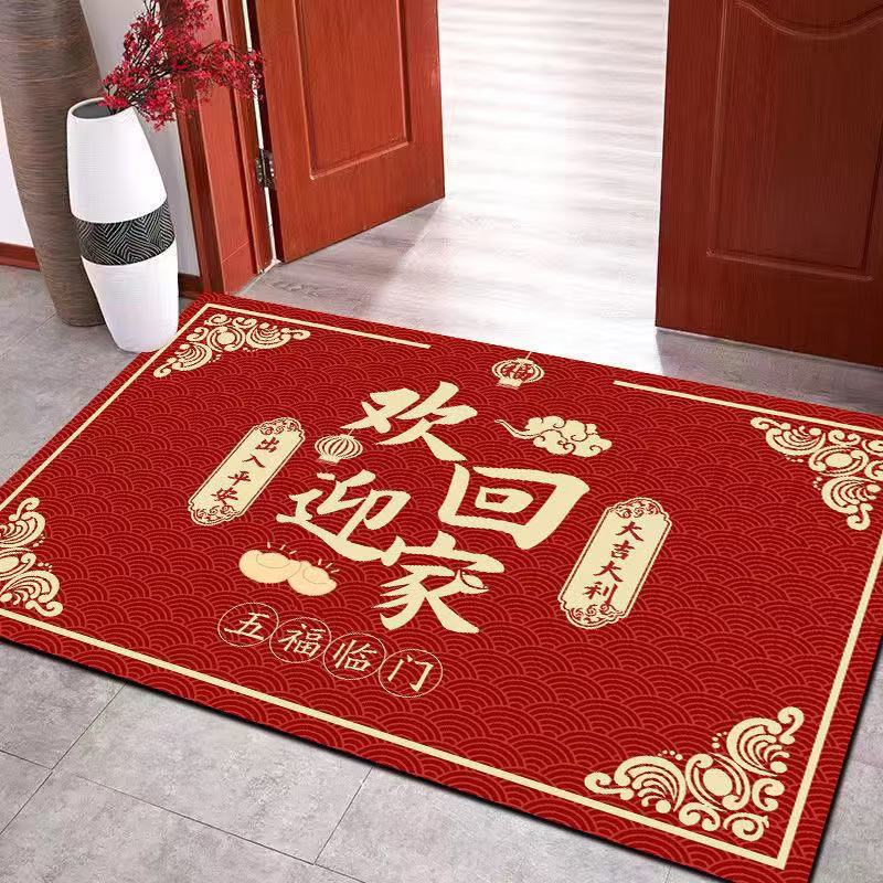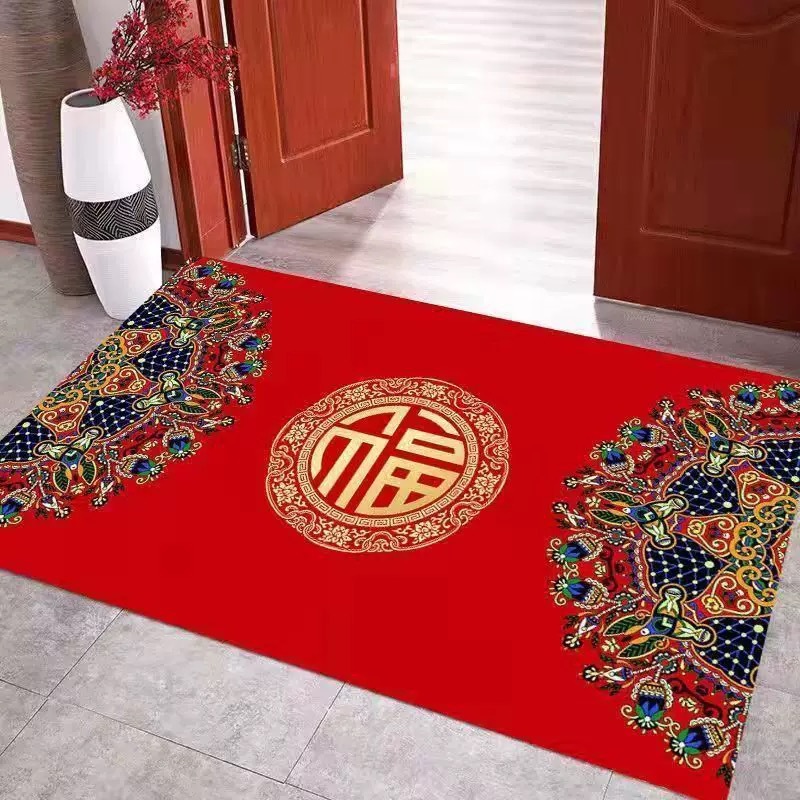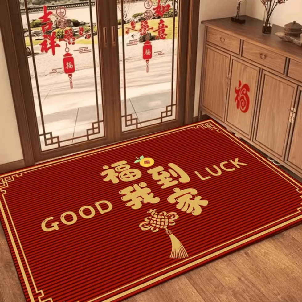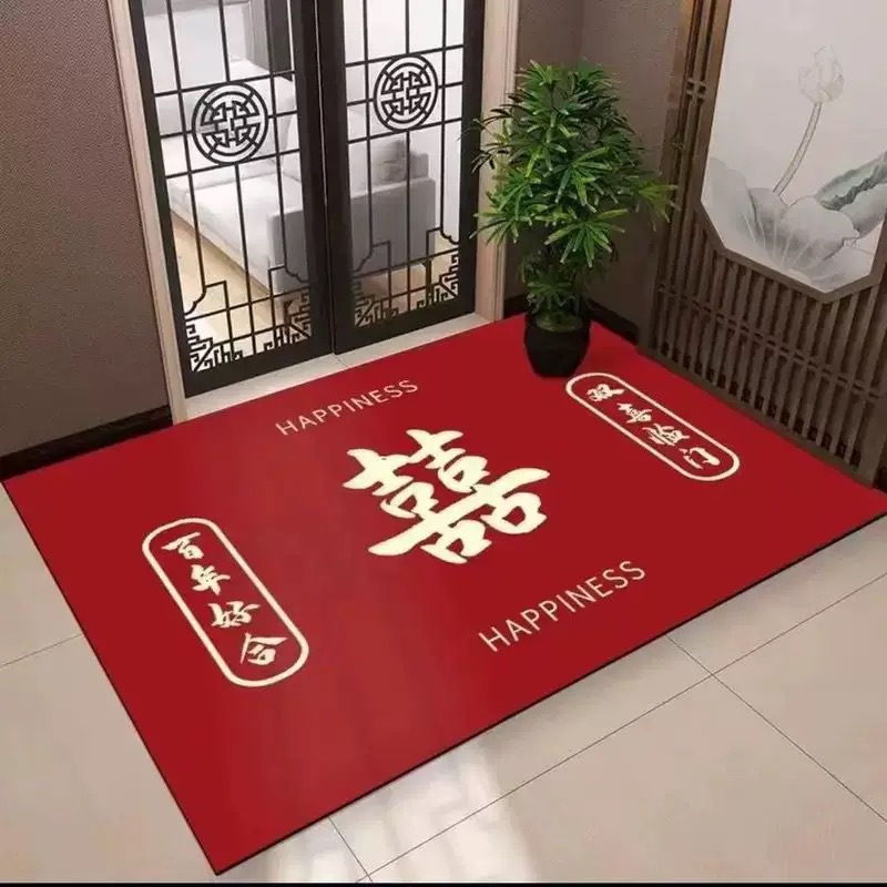 새해 빨간색 현관 매트, 출입문 매트, 미끄럼 방지 발매트, 절단 가능한 카펫 매트, 현관 전용