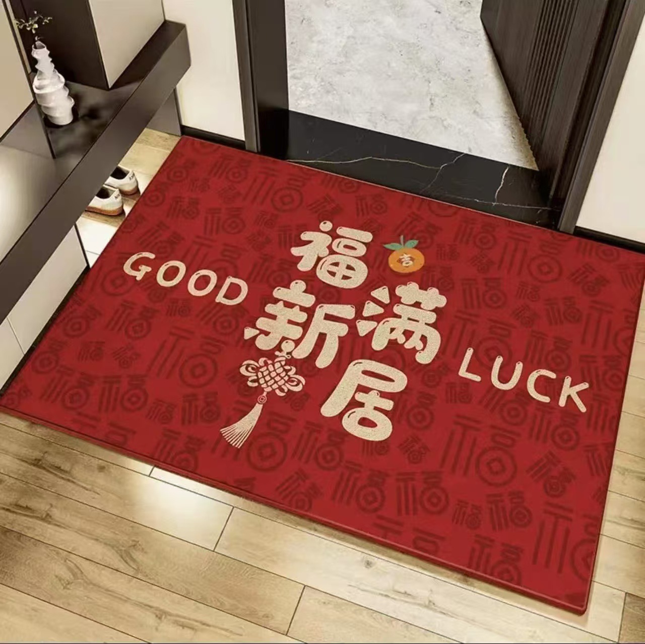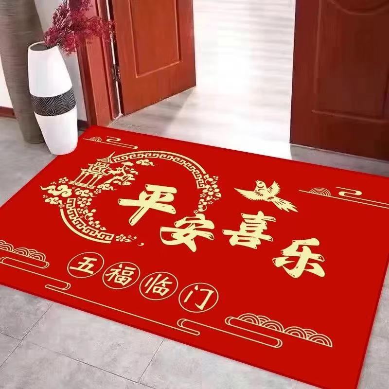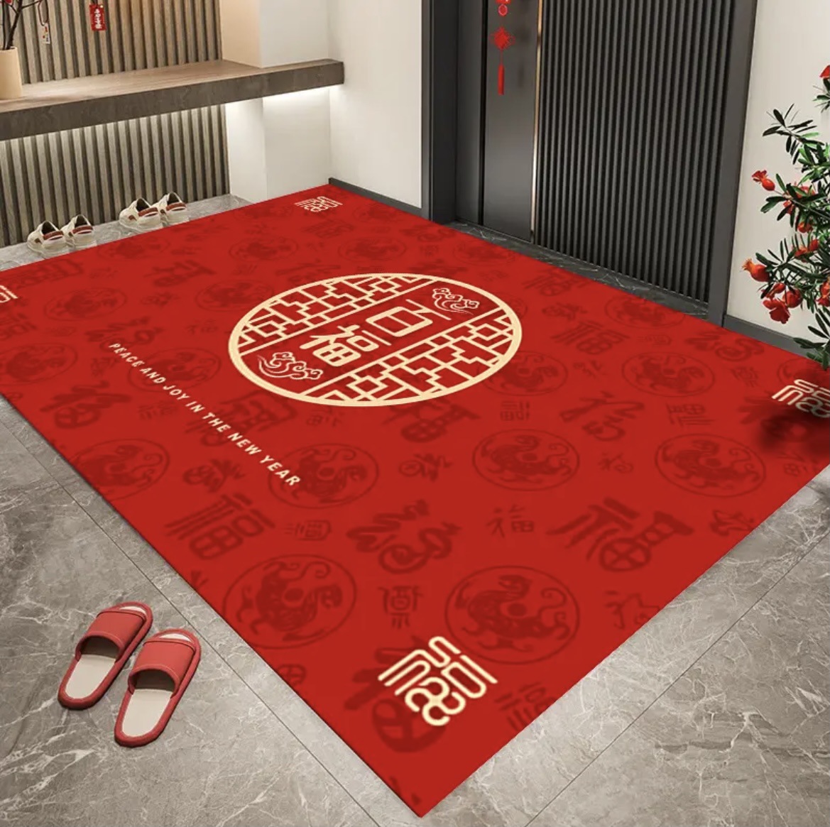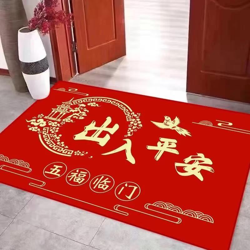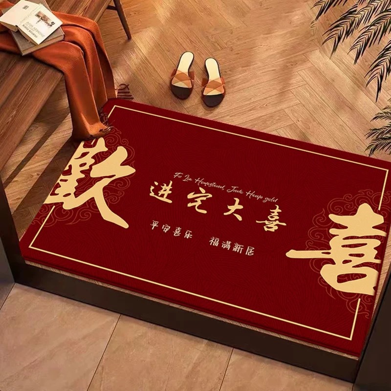 새해 빨간색 현관 매트, 출입문 매트, 미끄럼 방지 발매트, 절단 가능한 카펫 매트, 현관 전용