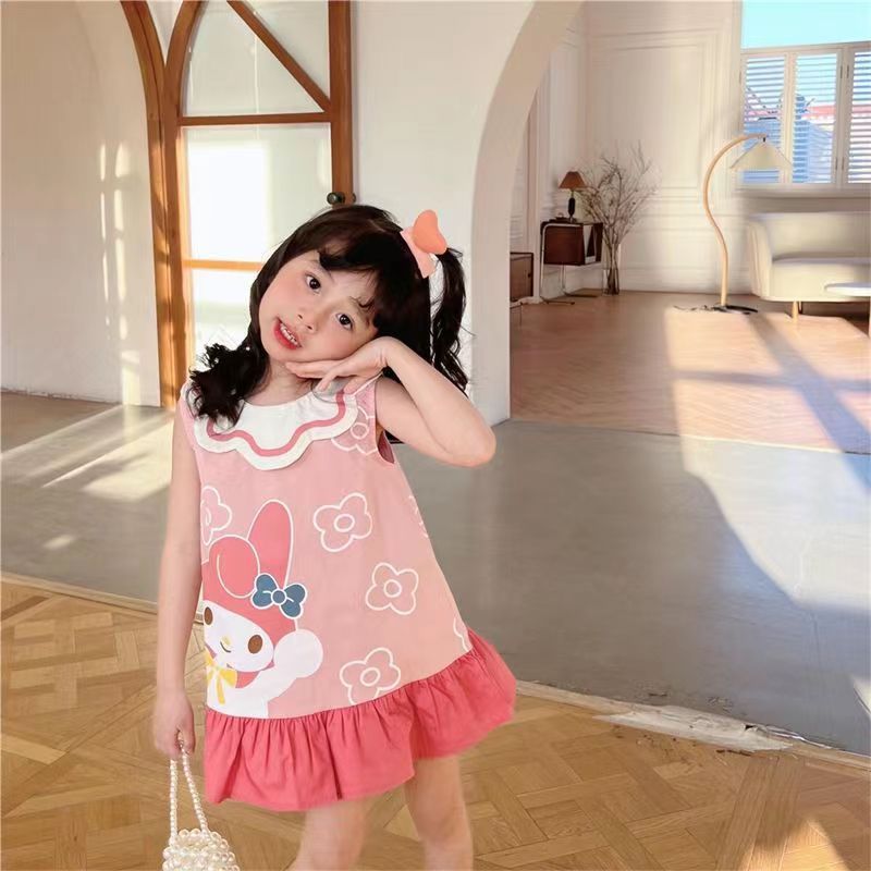 2025 여름 새로운 소녀 판타지 만화 조끼 주름진 만화 헬로 키티 민소매 원피스 스커트 패션