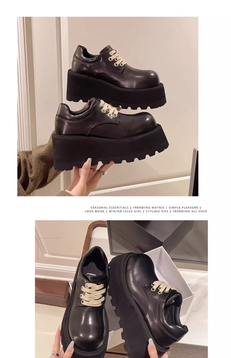 레이스 업 빅 헤드 고층 작은 가죽 신발 2024 가을 및 겨울 새로운 영국 레트로 블랙 두꺼운 Jk 로퍼스토어 가기