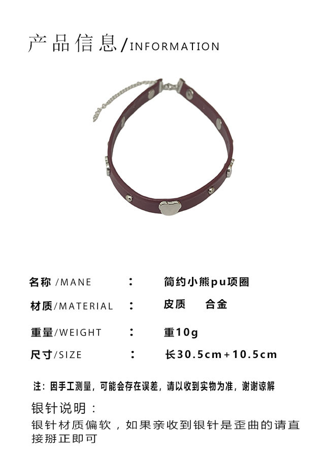 원래 디자인 곰 초커 가죽 로프 칼라 스파이스 소녀 패션 창조적 인 목 벨트 목 반지 성격 올 매치 트렌디 쥬얼리