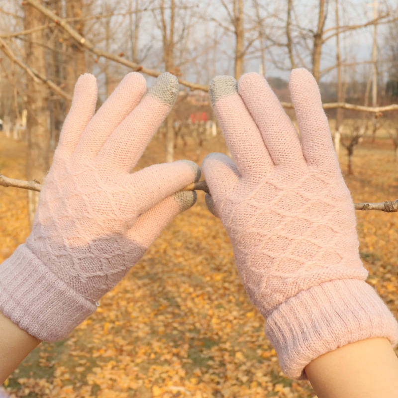 장갑 여성의 2024 새로운 얇은 가을과 겨울 니트 전시 터치 스크린 학생 한국어 O 버전 올 매치 사이클링 따뜻한 귀여운