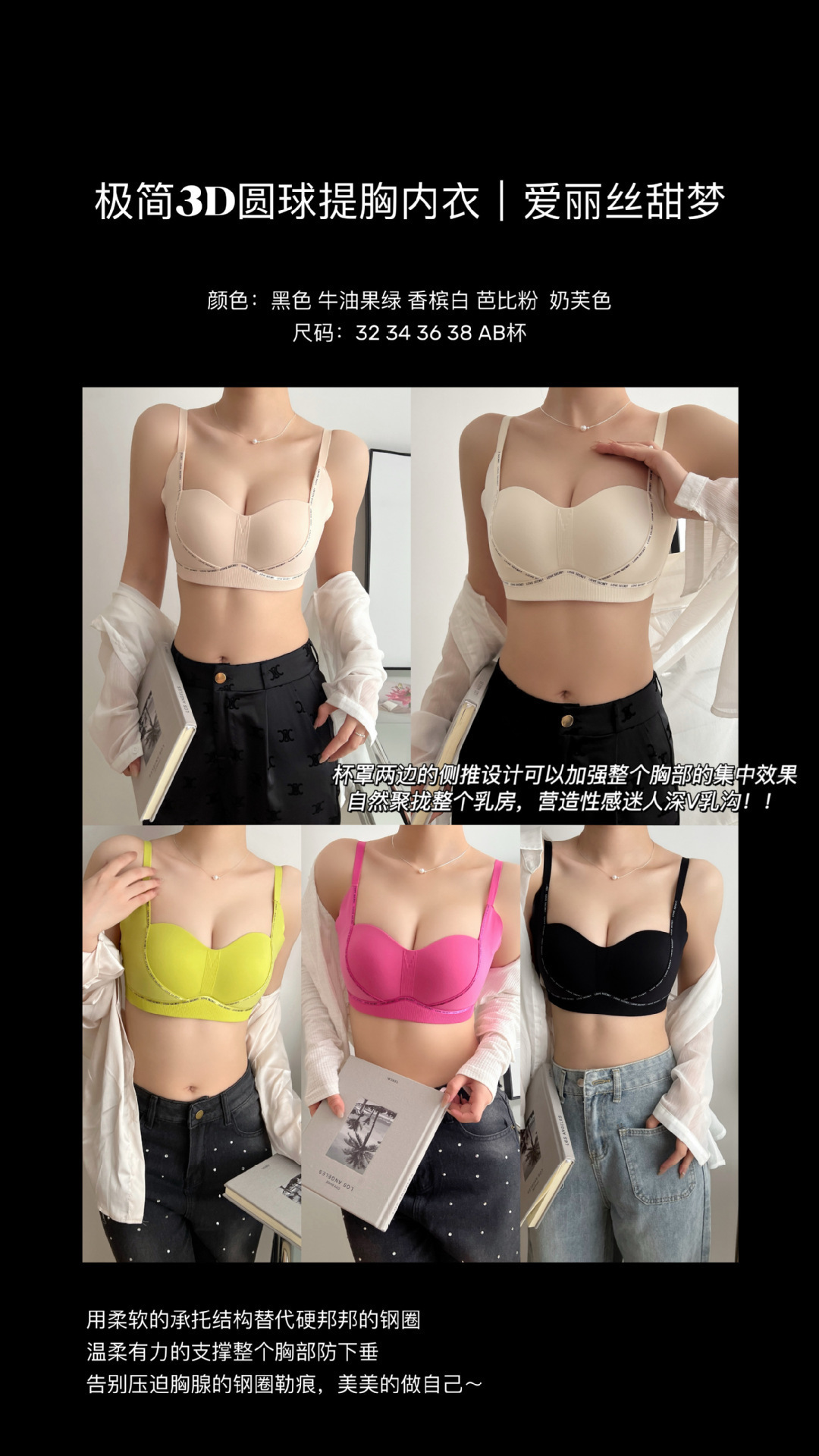 리프트 Tracless 속옷 여성의 작은 가슴 푸시 업 쇼 대형 상부 브래킷 노 스틸 링 조정 가능한 유방 폐쇄 방지 처짐 브라스토어 가기