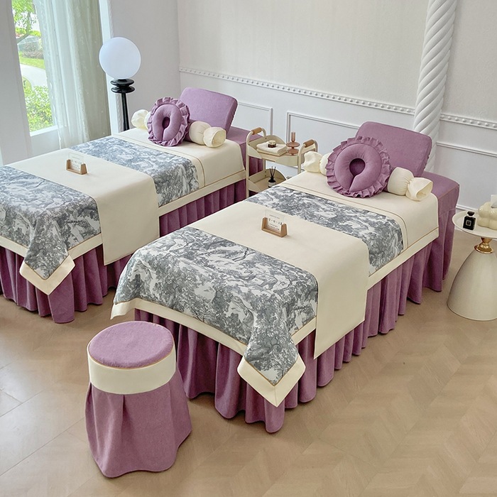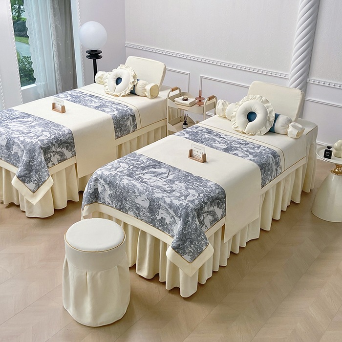 새로운 하이 엔드 두꺼운 침대보 4 피스 뷰티 살롱 SPA 클럽 귀 치료 시트 세트 로고 도매스토어 가기