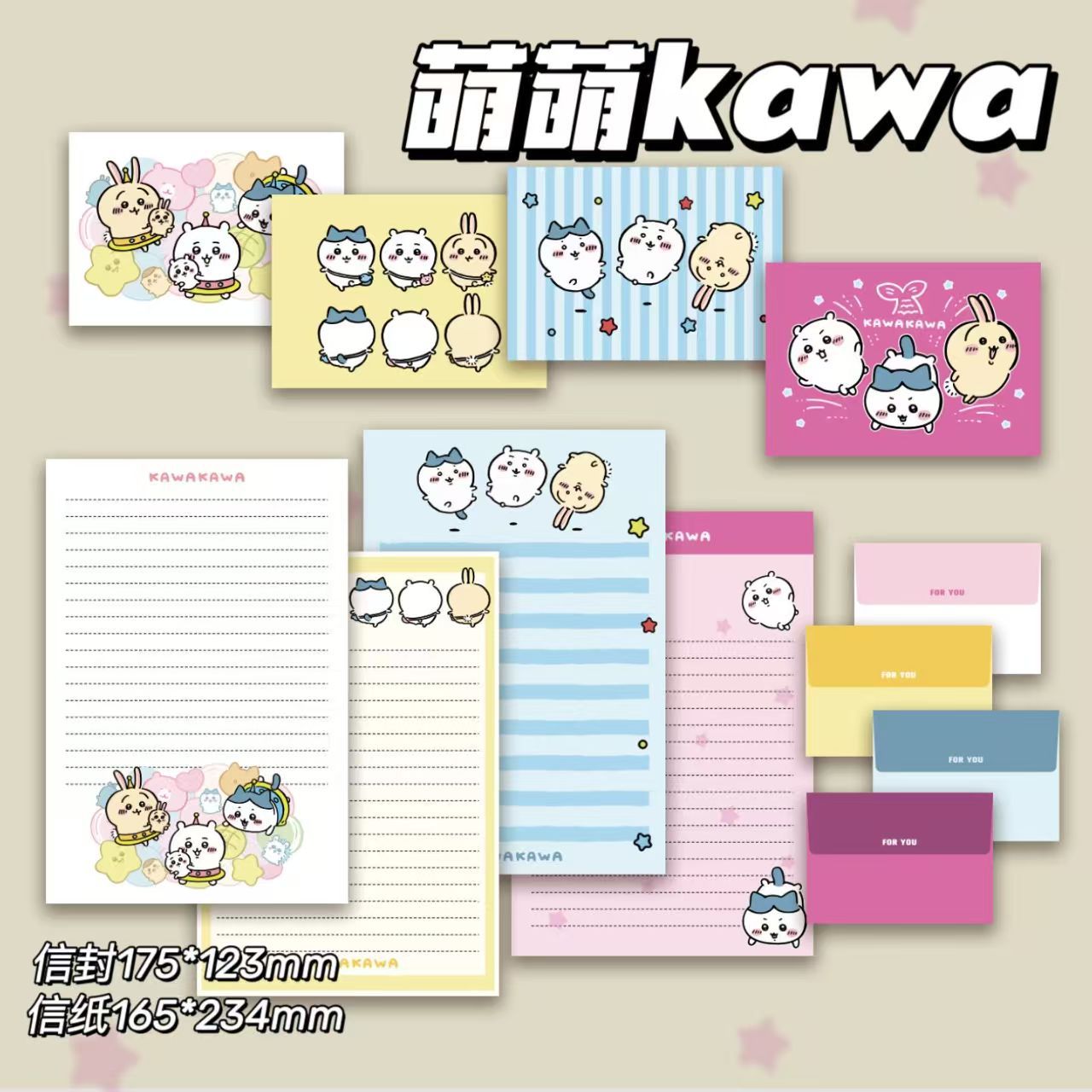 • [귀여운 카와] 봉투 4장 + 편지지 4장 1세트