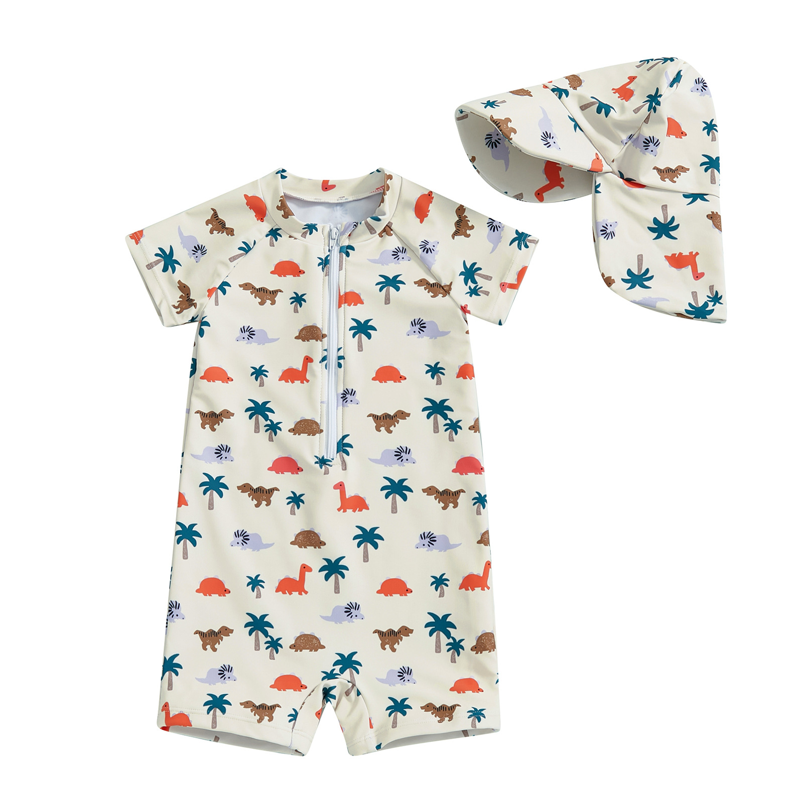국경 간 유럽과 미국의 패션 서양식 소년과 어린이 모자 짧은 소매 인쇄 아마존 수영복