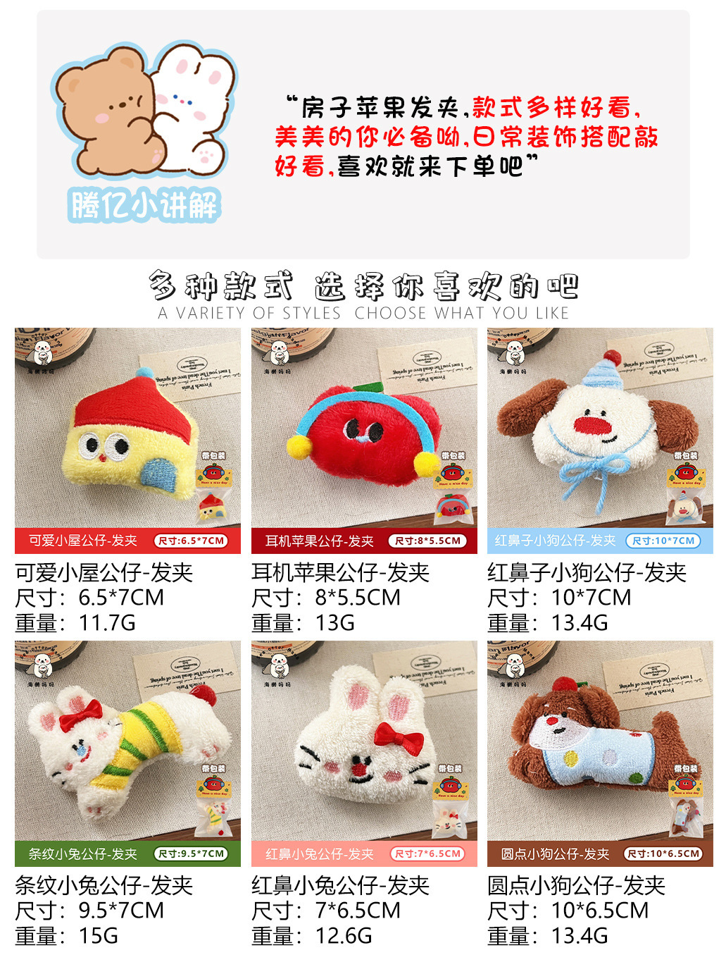 Tengyi 원래 귀여운 만화 인형 헤어핀 헤어 액세서리 가을과 겨울 귀여운 애완 동물 뱅 클립 클립 클립 어린이 올 매치 액세서리