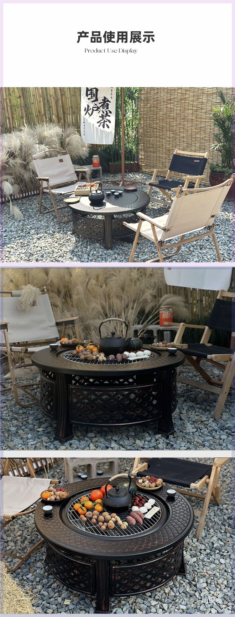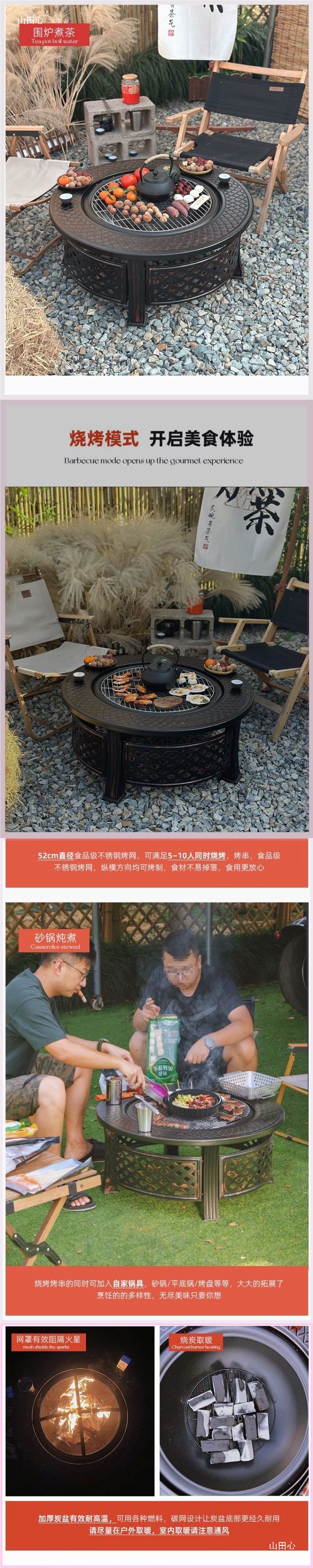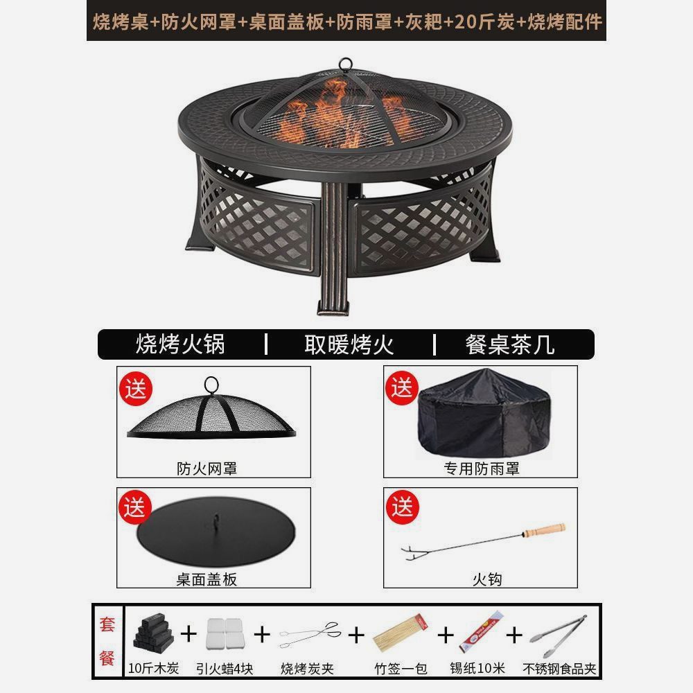 야외 장인 바베큐 테이블 안뜰 가정용 대형 숯 화재 동그라미 스토브 차 요리 숯 모닥불 빌라 테라스 스토브스토어 가기